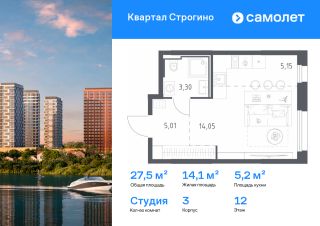 Строим кварталы для жизни с заботой о будущем. Предлагается квартира студия комфорт-класса 27,51 кв.м в корпусе 3 на 12 этаже, в ЖК ''Квартал Строгино''Квартира без отделки. Доступность опции ''отделка'' и возможность комплектации мебелью и декором уточняйте у застройщика.Приобрести квартиру возможно по специальным акциям от застройщика, с текущими условиями акций можно ознакомиться в блоке ''Акций''.Цена динамическая и может отличаться, уточняйте актуальность у застройщика.В жилом комплексе ''Квартал Строгино'' вас ждет широкий выбор досуга. Рядом МКАД и выезд на Новорижское шоссе и станции метро ''Строгино'' и ''Мякинино''. В пешей доступности — Живописная бухта, можно доехать до ''Липовой Рощи'' и ''Серебряного бора''. На территории комплекса будут 2 детских сада, школа и поликлиника. Двор-парк с площадками, велодорожками и паркингами. В лобби есть помещения для колясок. Квартиры с готовой отделкой и видом на бухту.