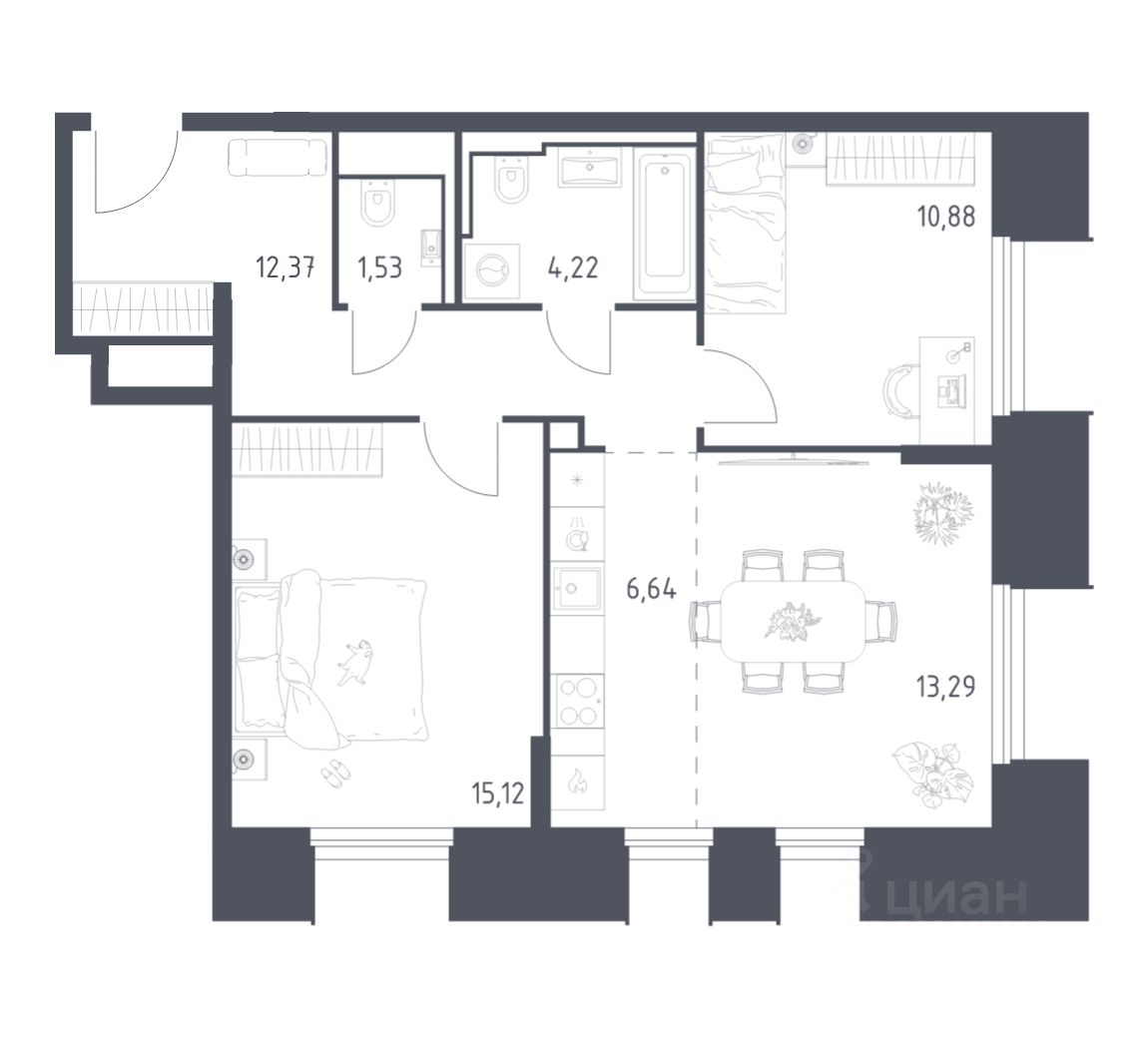 Строим кварталы для жизни с заботой о будущем. Предлагается 3-комнатная квартира комфорт-класса площадью 70,18 кв.м в корпусе 2 на 4-м этаже, в жилом комплексе ''Квартал Строгино''. В варианте без отделки мы установили окна и входную дверь, завели в квартиру коммуникации. Получайте ключи и начните создавать интерьер мечты в новой квартире. В варианте с предчистовой отделкой мы развели коммуникации по помещениям, выровняли и зашпаклевали стены, подготовили пол к чистовому покрытию. Ваша будущая квартира готова к финишному ремонту. Осталось выбрать, какие оттенки будут в вашем интерьере и воплотить дизайнерские идеи. В варианте с готовой отделкой мы поклеили обои под покраску, постелили полы в комнатах и санузлах, выполнили отделку стен. Установили сантехнику и межкомнатные двери, провели электрику. Это лучшее соотношение цены, качества и затраченного времени. Осталось только выбрать место для обеденного стола и удобного дивана. Приобрести квартиру возможно по специальным акциям от застройщика, с текущими условиями акций можно ознакомиться в блоке ''Акций''. Цена динамическая и может отличаться, уточняйте актуальность у застройщика. В жилом комплексе ''Квартал Строгино'' вас ждет широкий выбор досуга. Рядом МКАД и выезд на Новорижское шоссе и станции метро ''Строгино'' и ''Мякинино''. В пешей доступности — Живописная бухта, можно доехать до ''Липовой Рощи'' и ''Серебряного бора''. На территории комплекса будут 2 детских сада, школа и поликлиника. Двор-парк с площадками, велодорожками и паркингами. В лобби есть помещения для колясок. Квартиры с готовой отделкой и видом на бухту.