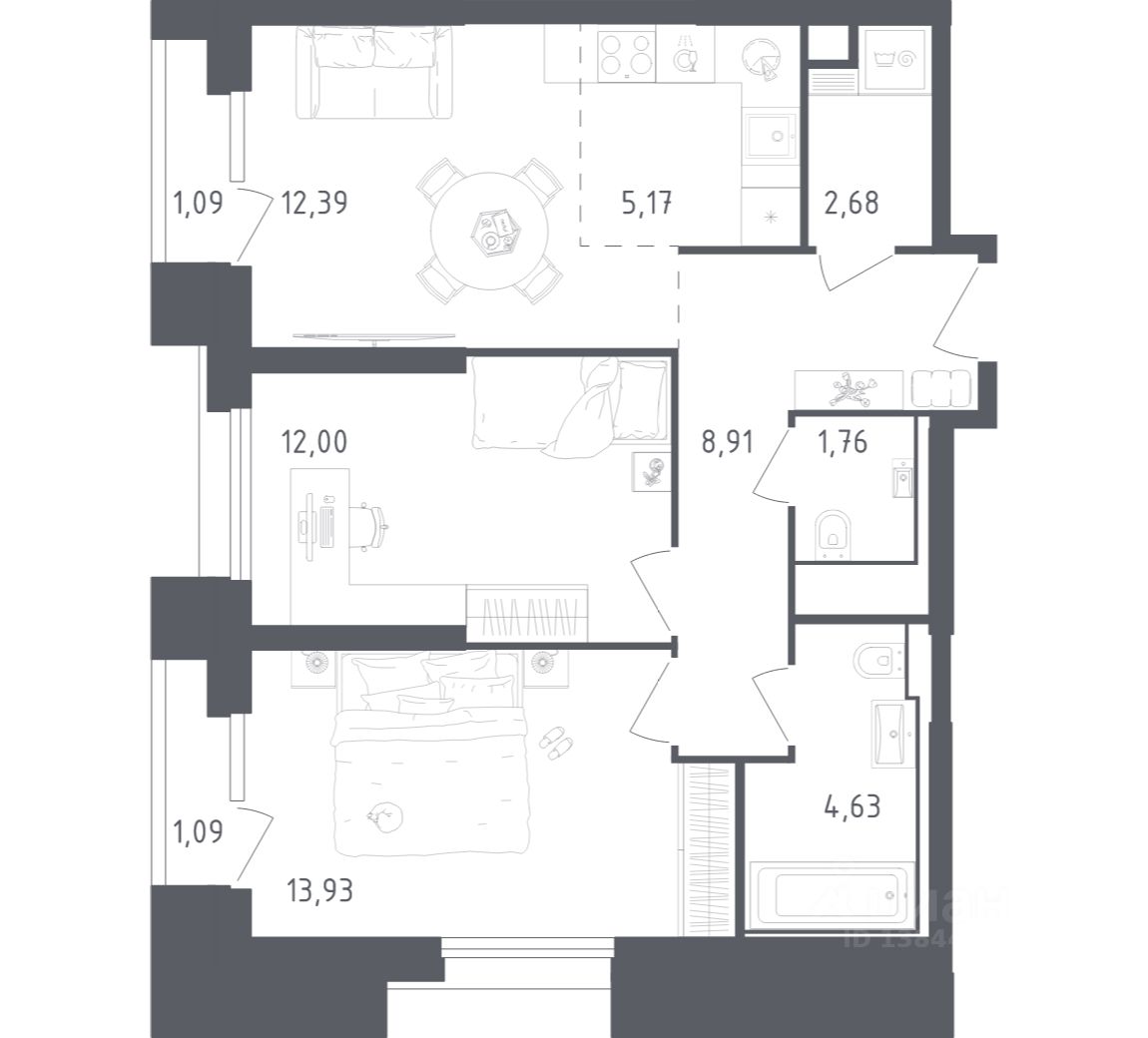 Строим кварталы для жизни с заботой о будущем. Предлагается 1-комнатная квартира комфорт-класса площадью 45,62 кв.м в корпусе 3 на 12-м этаже, в жилом комплексе ''Квартал Строгино''. В варианте без отделки мы установили окна и входную дверь, завели в квартиру коммуникации. Получайте ключи и начните создавать интерьер мечты в новой квартире. В варианте с предчистовой отделкой мы развели коммуникации по помещениям, выровняли и зашпаклевали стены, подготовили пол к чистовому покрытию. Ваша будущая квартира готова к финишному ремонту. Осталось выбрать, какие оттенки будут в вашем интерьере и воплотить дизайнерские идеи. В варианте с готовой отделкой мы поклеили обои под покраску, постелили полы в комнатах и санузлах, выполнили отделку стен. Установили сантехнику и межкомнатные двери, провели электрику. Это лучшее соотношение цены, качества и затраченного времени. Осталось только выбрать место для обеденного стола и удобного дивана. Приобрести квартиру возможно по специальным акциям от застройщика, с текущими условиями акций можно ознакомиться в блоке ''Акций''. Цена динамическая и может отличаться, уточняйте актуальность у застройщика. В жилом комплексе ''Квартал Строгино'' вас ждет широкий выбор досуга. Рядом МКАД и выезд на Новорижское шоссе и станции метро ''Строгино'' и ''Мякинино''. В пешей доступности — Живописная бухта, можно доехать до ''Липовой Рощи'' и ''Серебряного бора''. На территории комплекса будут 2 детских сада, школа и поликлиника. Двор-парк с площадками, велодорожками и паркингами. В лобби есть помещения для колясок. Квартиры с готовой отделкой и видом на бухту.