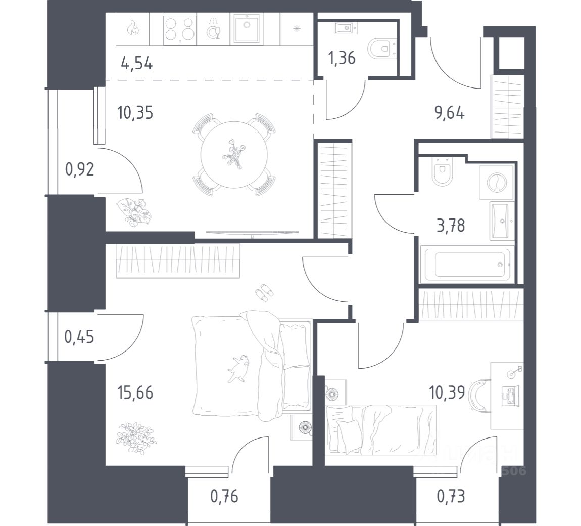 54 м² · Этаж 9 из 30