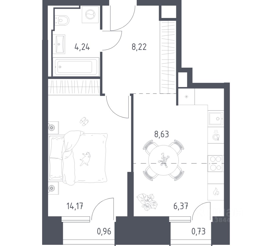 34 м² · Этаж 8 из 24
