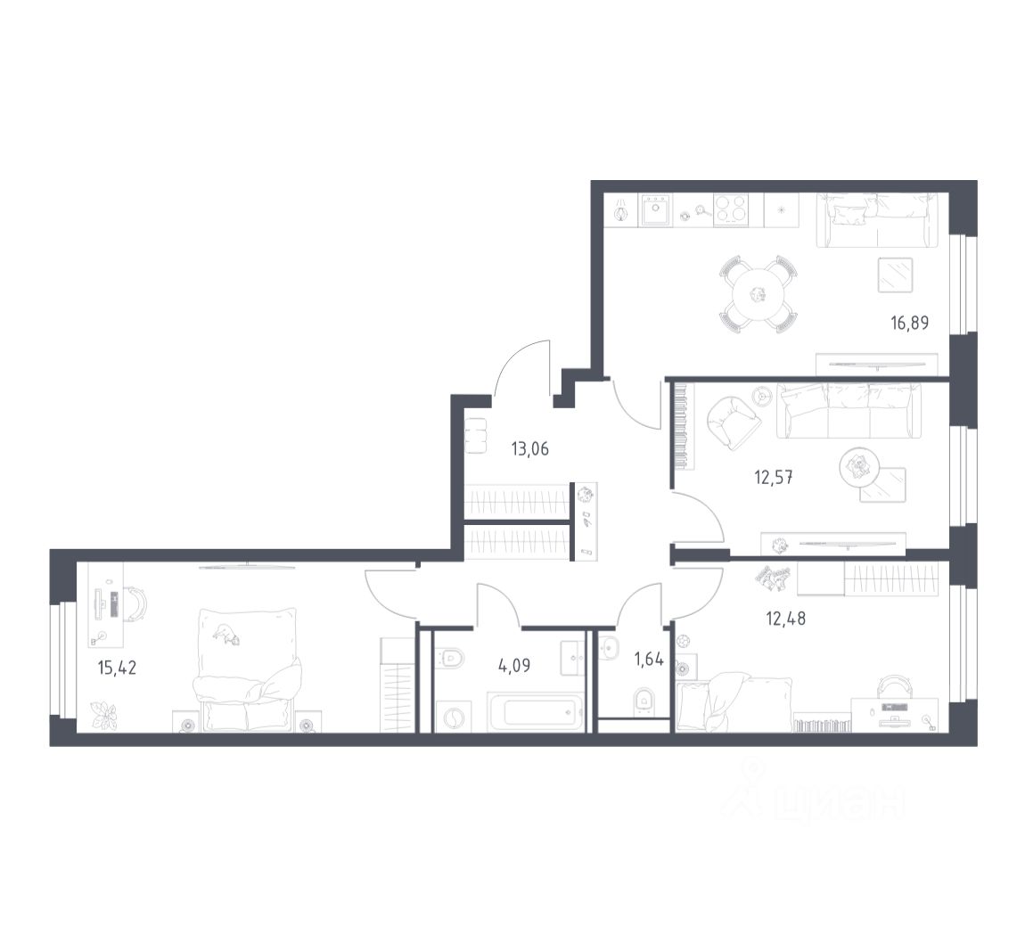 Строим кварталы для жизни с заботой о будущем. Предлагается 3-комнатная квартира комфорт-класса площадью 76,15 кв.м в корпусе 2 на 16-м этаже, в жилом комплексе ''Квартал Строгино''. В варианте без отделки мы установили окна и входную дверь, завели в квартиру коммуникации. Получайте ключи и начните создавать интерьер мечты в новой квартире. В варианте с предчистовой отделкой мы развели коммуникации по помещениям, выровняли и зашпаклевали стены, подготовили пол к чистовому покрытию. Ваша будущая квартира готова к финишному ремонту. Осталось выбрать, какие оттенки будут в вашем интерьере и воплотить дизайнерские идеи. В варианте с готовой отделкой мы поклеили обои под покраску, постелили полы в комнатах и санузлах, выполнили отделку стен. Установили сантехнику и межкомнатные двери, провели электрику. Это лучшее соотношение цены, качества и затраченного времени. Осталось только выбрать место для обеденного стола и удобного дивана. Приобрести квартиру возможно по специальным акциям от застройщика, с текущими условиями акций можно ознакомиться в блоке ''Акций''. Цена динамическая и может отличаться, уточняйте актуальность у застройщика. В жилом комплексе ''Квартал Строгино'' вас ждет широкий выбор досуга. Рядом МКАД и выезд на Новорижское шоссе и станции метро ''Строгино'' и ''Мякинино''. В пешей доступности — Живописная бухта, можно доехать до ''Липовой Рощи'' и ''Серебряного бора''. На территории комплекса будут 2 детских сада, школа и поликлиника. Двор-парк с площадками, велодорожками и паркингами. В лобби есть помещения для колясок. Квартиры с готовой отделкой и видом на бухту.
