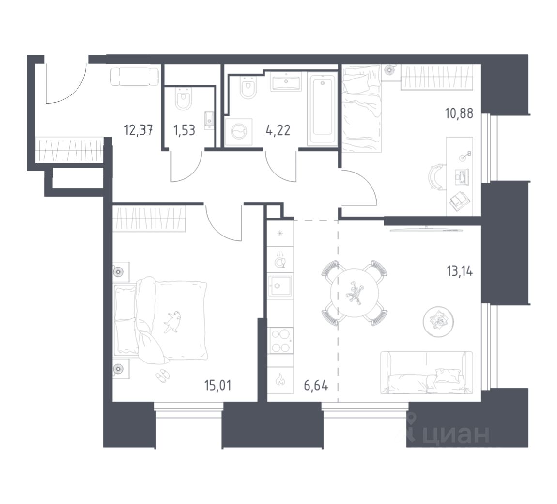 Строим кварталы для жизни с заботой о будущем. Предлагается 2-комнатная квартира комфорт-класса площадью 58,85 кв.м в корпусе 2 на 21-м этаже, в жилом комплексе ''Квартал Строгино''. В варианте без отделки мы установили окна и входную дверь, завели в квартиру коммуникации. Получайте ключи и начните создавать интерьер мечты в новой квартире. В варианте с предчистовой отделкой мы развели коммуникации по помещениям, выровняли и зашпаклевали стены, подготовили пол к чистовому покрытию. Ваша будущая квартира готова к финишному ремонту. Осталось выбрать, какие оттенки будут в вашем интерьере и воплотить дизайнерские идеи. В варианте с готовой отделкой мы поклеили обои под покраску, постелили полы в комнатах и санузлах, выполнили отделку стен. Установили сантехнику и межкомнатные двери, провели электрику. Это лучшее соотношение цены, качества и затраченного времени. Осталось только выбрать место для обеденного стола и удобного дивана. Приобрести квартиру возможно по специальным акциям от застройщика, с текущими условиями акций можно ознакомиться в блоке ''Акций''. Цена динамическая и может отличаться, уточняйте актуальность у застройщика. В жилом комплексе ''Квартал Строгино'' вас ждет широкий выбор досуга. Рядом МКАД и выезд на Новорижское шоссе и станции метро ''Строгино'' и ''Мякинино''. В пешей доступности — Живописная бухта, можно доехать до ''Липовой Рощи'' и ''Серебряного бора''. На территории комплекса будут 2 детских сада, школа и поликлиника. Двор-парк с площадками, велодорожками и паркингами. В лобби есть помещения для колясок. Квартиры с готовой отделкой и видом на бухту.