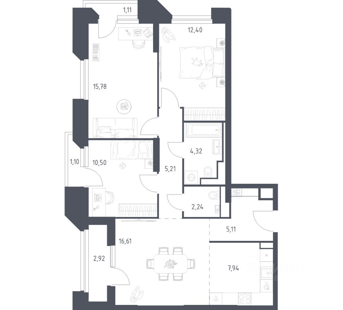 Строим кварталы для жизни с заботой о будущем. Предлагается 3-комнатная квартира комфорт-класса площадью 76,14 кв.м в корпусе 2 на 21-м этаже, в жилом комплексе ''Квартал Строгино''. В варианте без отделки мы установили окна и входную дверь, завели в квартиру коммуникации. Получайте ключи и начните создавать интерьер мечты в новой квартире. В варианте с предчистовой отделкой мы развели коммуникации по помещениям, выровняли и зашпаклевали стены, подготовили пол к чистовому покрытию. Ваша будущая квартира готова к финишному ремонту. Осталось выбрать, какие оттенки будут в вашем интерьере и воплотить дизайнерские идеи. В варианте с готовой отделкой мы поклеили обои под покраску, постелили полы в комнатах и санузлах, выполнили отделку стен. Установили сантехнику и межкомнатные двери, провели электрику. Это лучшее соотношение цены, качества и затраченного времени. Осталось только выбрать место для обеденного стола и удобного дивана. Приобрести квартиру возможно по специальным акциям от застройщика, с текущими условиями акций можно ознакомиться в блоке ''Акций''. Цена динамическая и может отличаться, уточняйте актуальность у застройщика. В жилом комплексе ''Квартал Строгино'' вас ждет широкий выбор досуга. Рядом МКАД и выезд на Новорижское шоссе и станции метро ''Строгино'' и ''Мякинино''. В пешей доступности — Живописная бухта, можно доехать до ''Липовой Рощи'' и ''Серебряного бора''. На территории комплекса будут 2 детских сада, школа и поликлиника. Двор-парк с площадками, велодорожками и паркингами. В лобби есть помещения для колясок. Квартиры с готовой отделкой и видом на бухту.