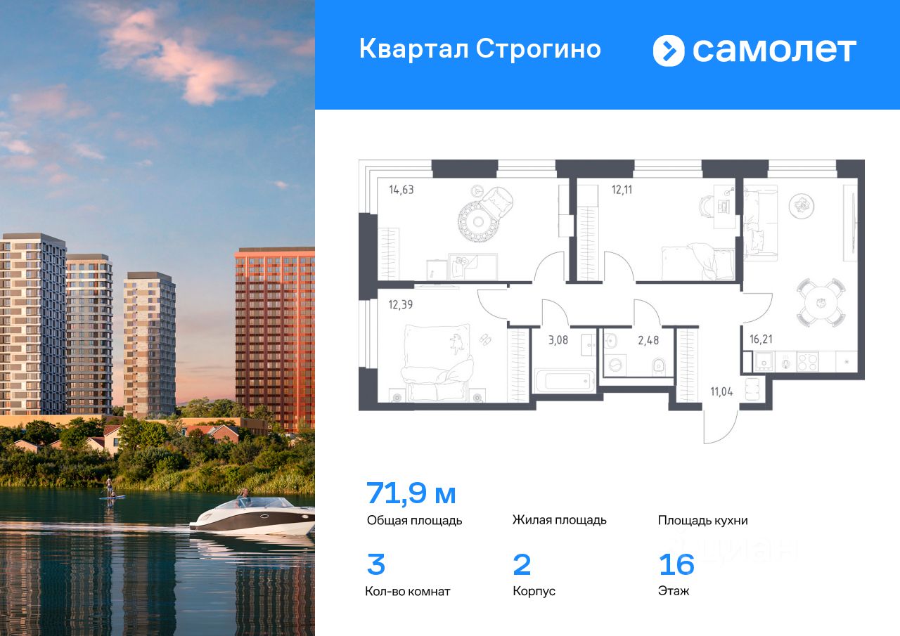 Предлагается 3-комнатная квартира комфорт-класса 71,94 кв.м в корпусе 2 на 16 этаже, в ЖК ''Квартал Строгино'' Квартира без отделки. Доступность опции ''отделка'' и возможность комплектации мебелью и декором уточняйте у застройщика. Приобрести квартиру возможно по специальным акциям от застройщика, с текущими условиями акций можно ознакомиться в блоке Акций. Цена динамическая и может отличаться, уточняйте актуальность у застройщика. В жилом комплексе ''Квартал Строгино'' вас ждет широкий выбор досуга. Рядом МКАД и выезд на Новорижское шоссе и станции метро ''Строгино'' и ''Мякинино''. В пешей доступности — Живописная бухта, можно доехать до ''Липовой Рощи'' и ''Серебряного бора''. На территории комплекса будут 2 детских сада, школа и поликлиника. Двор-парк с площадками, велодорожками и паркингами. В лобби есть помещения для колясок. Квартиры с готовой отделкой и видом на бухту.
