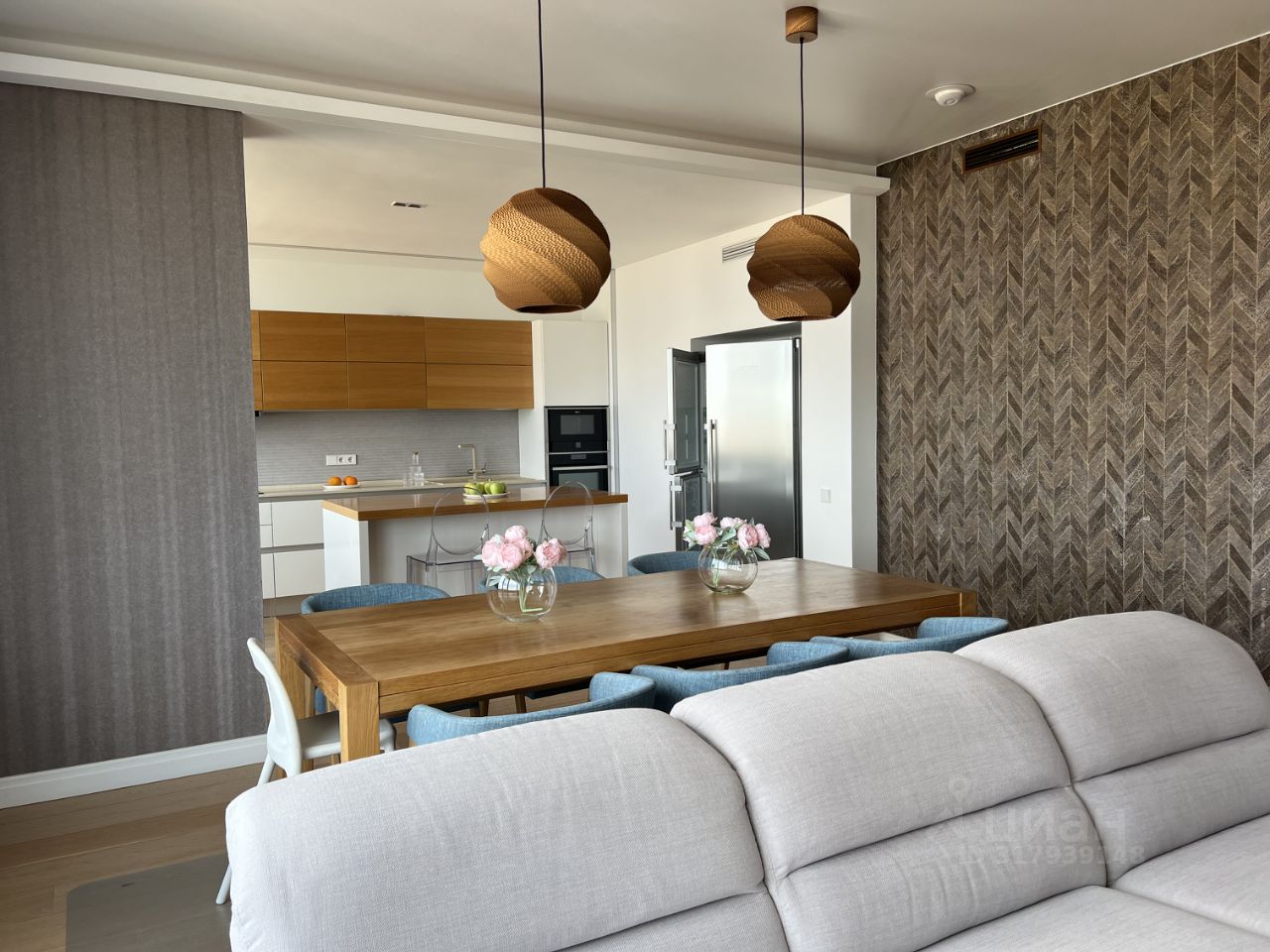 До 2027 года открытие станции метро Рублево-Архангельское-15 мин пешком! Просторная светлая квартира премиум-класса с роскошным дизайнерским интерьером - идеальный выбор для вашей большой дружной семьи! Квартира ощущается домом в городе и включает четыре уютные спальни, включая мастер-спальню, большую кухню-гостиную, два комфортабельных совмещенных санузла, удобный гостевой туалет и функциональную постирочную комнату. Панорамные окна отрывают потрясающий вид, наполняют помещение естественным светом и простором и создают атмосферу домашнего тепла и комфорта. В квартире есть вся мебель и техника для жизни: по комнатам разведены 2 канальных кондиционера Мitsubishi, а также выведена приточная вентиляция и бризеры Tion, в постирочной стирально-сушильная машина AEG, кухонная техника NEFF, холодильник side-by-side и винный шкаф LIEBHERR. Диваны с электроприводом ROM, встроенная мебель MrDOORS, мягкая мебель в мастер-спальне производства Италия. Квартира располагается в охраняемом ЖК бизнес-класса ''Ильинский парк''. На территории есть охрана, шлагбаумы, в подъезде консьерж, имеется подземный паркинг, в котором организовано хранение шин, шиномонтаж, автомойка. В ЖК располагается спортивный клуб, детский развивающий центр, кондитерская, салоны красоты, тайский спа ''7 Красок'', супермаркет ''Лента'' и ресторан ''Тануки''. В шаговой доступности несколько детских садов, развивающих центров, школа, новый стадион. В ближайшей автомобильной доступности вся богатая инфраструктура Новорижского шоссе.