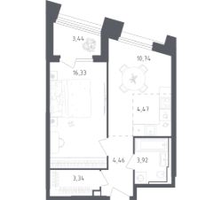 В продаже 1-комнатная квартира в корпусе 19 ЖК 'Sky Sputnik'. Квартира располагается на 26 этаже, общая площадь 41.44 м2.