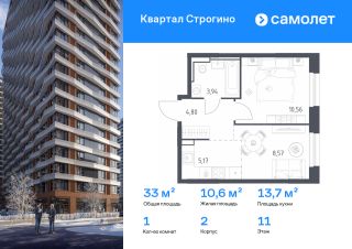 1-к, Квартал Строгино ЖК, 2 Показать на карте