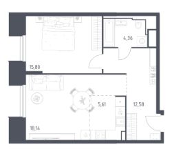 В продаже 1-комнатная квартира в корпусе 2 ЖК 'Квартал Строгино'. Квартира располагается на 18 этаже, общая площадь 41.74 м2.