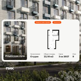 Продаётся квартира-студия площадью 21,54 кв.м на 9 этаже 9 этажного дома (Корпус 4.2, Секция 2) проекта ПИК Ильинские луга. Светлый просторный подъезд на уровне земли, функциональная планировка, большие окна, . Жилой район ''Ильинские луга'' находится в 10 километрах от МКАД по Новорижскому шоссе, в 20 минутах на автомобиле от станций метро ''Волоколамская'', ''Тушинская'' и ''Строгино''. В будущем ближе к проекту, в 9 минутах пути на машине, откроется станция ''Ильинская'' Рублёво-Архангельской линии, которая будет соединять Арбатско-Покровскую линию и Большую кольцевую линию.Сейчас в квартале начались продажи в корпусах 3.2, 3.3, 3.4, 3.5 и 3.6.''Ильинские луга'' — масштабный проект, в который входит девять детских садов, четыре школы и поликлиника. Он строится в престижном и экологичном районе среди лесов и памятников природы. За 5 минут от жилого квартала можно доехать до Рублёво-Успенского шоссе, а за 30 минут — до центра Москвы. До крупного торгового центра ''РИГАМОЛЛ'' всего 5 минут на автомобиле, а до ТЦ ''Твой дом'' и гипермаркета ''Глобус'' — 10 минут.В ''Ильинских лугах'' строятся только девятиэтажные дома — такая архитектура соответствует спокойной жизни за городом. В каждом дворе-парке есть места для отдыха, детские и спортивные площадки. А ещё, здесь уже открыт большой PlayHub ''Гравити'' — современное игровое пространство с космической тематикой, холмами, зонами для игр и отдыха жителей любого возраста.На первых этажах уже работают магазины, кафе и пекарни.Места для отдыха от ''Ильинских лугов'' тоже недалеко: 10 минут на машине — и вы в музее-усадьбе ''Архангельское''. Также рядом находится Лохин остров — памятник природы, где водятся речные черепахи, есть места для кемпинга и возможность сплавиться по реке. Артикул 1015498 (Застройщик ООО ''СЗ ''ГРАДОЛИМП'')