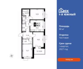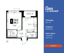 1-к, Первый Южный ЖК, 1.3 Показать на карте