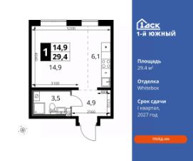 Максимальные скидки при 100% оплате.Trade-in вместо первоначального взноса - выгодно обменяйте вашу квартиру на новую!Прямая продажа от застройщика! Жилой Комплекс класса Комфорт плюс.Продаётся студия номер 298 общей площадью 27.9 кв.м на 15-м этаже 25 этажного дома. Отделка Whitebox.Особенности:- Квартира доступна к покупке в Trade-In.- Линейная планировка - максимальная функциональность и удобство.- Линейная кухня - функциональность и практичность в одном решении.- Стандартное количество квартир на этаже - оптимальный выбор для городской жизни.- Ниша под шкаф - компактное и удобное место для вещей.- Лоджия - уютное место для отдыха и тишины.- Вид из окна: улица- МЦД5 в пешей доступности- Квартал с южным садом- Свои 3 детских сада и 2 большие школыКвартира с предчистовой отделкой (White box). Вам не придётся заниматься черновыми трудоёмкими работами, а чистовую отделку и дизайн сделаете по своему вкусу.Расположение комплекса: Одно из преимуществ проектов 1- ДСК - большие застекленные лоджии. Другое преимущество - честный евро-формат. Во всем проекте предусмотрена система ''Умный дом''. В состав устанавливаемого пакета устройств входит: WiFi реле для управления группами потребителей, беспроводной кран перекрытия с эл. приводом, беспроводной сенсор протечки, Яндекс Станция Мини.Его расположение можно назвать удачным за счет транспортной доступности и близости к природным объектам. По соседству лес, а в каждом дворе плодовые деревья. Весной квартал окутывает бело-розовое облако: это цветут яблони, груши, сливы. К августу в воздух наполняется ароматом созревших плодов. Зимой среди покрытых инеем деревьев протянулась лыжня.Транспортная доступность:- Общественный транспорт: Действующая ж/д станция Булатниково (в перспективе будущая МДЦ D5) в пешей доступности, всего 10-12 минут.- Личный автотранспорт:Удобный выезд на трассу М4-Дон в сторону Москвы и области - 850 м, до МКАД - 1 кмВнутренняя инфраструктура:Красивые продуманные подъезды - еще одно преимущество проекта 1-й Южный. Вход в сквозные подъезды есть и с улицы, и со двора. Благодаря сплошному остеклению в них всегда светло и уютно. Подъезды расположены на уровне земли, поэтому и молодым родителям с коляской, и жильцам с ограниченными возможностями вход и выход неудобств не доставят.В помещении предусмотрено место под стойку ресепшен с выводом инженерных сетей. Если жильцы решат на общем собрании, что необходим охранник или консьерж, организовать для них рабочее место можно быстро и с минимальными затратами. В подъездах предусмотрены уборные для детей и взрослых. Колясочные в каждом подъезде позволяют поддерживать порядок и чистоту на этажах. На случай прогулки с четвероногим питомцем в непогоду в подъездах устроены лапомойки. Во дворах и на общественных территориях 1-ого Южного столько всего интересного для юных обитателей. Собственные 3 детских сада и 2 больших школы буквально ''под окнами''Изюминка проекта - пешеходный бульвар-дендрарий, он идеален для семейных про