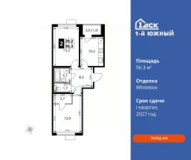 Максимальные скидки при 100% оплате.Trade-in вместо первоначального взноса - выгодно обменяйте вашу квартиру на новую!Прямая продажа от застройщика! Жилой Комплекс класса Комфорт плюс.Продаётся 2-к квартира номер 501 общей площадью 56.3 кв.м на 17-м этаже 24 этажного дома. Отделка Whitebox.Особенности:- Квартира доступна к покупке в Trade-In.- Мастер-зона с гардеробной. Просторное место для отдыха и удобного хранения вещей.- Распашная планировка - отличное сочетание удобства и свободы.- Раздельный санузел- Можно оборудовать рабочее место - комфорт для работы и учёбы.- Линейная кухня - функциональность и практичность в одном решении.- Ограниченное количество квартир на этаже - комфорт и уют без лишней суеты.- Гардеробная - удобство для хранения и организации вещей.- Лоджия - уютное место для отдыха и тишины.- Вид из окна: двор- Вид из окна: улица- МЦД5 в пешей доступности- Квартал с южным садом- Свои 3 детских сада и 2 большие школыКвартира с предчистовой отделкой (White box). Вам не придётся заниматься черновыми трудоёмкими работами, а чистовую отделку и дизайн сделаете по своему вкусу.Расположение комплекса: Одно из преимуществ проектов 1- ДСК - большие застекленные лоджии. Другое преимущество - честный евро-формат. Во всем проекте предусмотрена система ''Умный дом''. В состав устанавливаемого пакета устройств входит: WiFi реле для управления группами потребителей, беспроводной кран перекрытия с эл. приводом, беспроводной сенсор протечки, Яндекс Станция Мини.Его расположение можно назвать удачным за счет транспортной доступности и близости к природным объектам. По соседству лес, а в каждом дворе плодовые деревья. Весной квартал окутывает бело-розовое облако: это цветут яблони, груши, сливы. К августу в воздух наполняется ароматом созревших плодов. Зимой среди покрытых инеем деревьев протянулась лыжня.Транспортная доступность:- Общественный транспорт: Действующая ж/д станция Булатниково (в перспективе будущая МДЦ D5) в пешей доступности, всего 10-12 минут.- Личный автотранспорт:Удобный выезд на трассу М4-Дон в сторону Москвы и области - 850 м, до МКАД - 1 кмВнутренняя инфраструктура:Красивые продуманные подъезды - еще одно преимущество проекта 1-й Южный. Вход в сквозные подъезды есть и с улицы, и со двора. Благодаря сплошному остеклению в них всегда светло и уютно. Подъезды расположены на уровне земли, поэтому и молодым родителям с коляской, и жильцам с ограниченными возможностями вход и выход неудобств не доставят.В помещении предусмотрено место под стойку ресепшен с выводом инженерных сетей. Если жильцы решат на общем собрании, что необходим охранник или консьерж, организовать для них рабочее место можно быстро и с минимальными затратами. В подъездах предусмотрены уборные для детей и взрослых. Колясочные в каждом подъезде позволяют поддерживать порядок и чистоту на этажах. На случай прогулки с четвероногим питомцем в непогоду в подъездах устроены лапомойки. Во дворах и на общественных территориях 1-ого Южного с