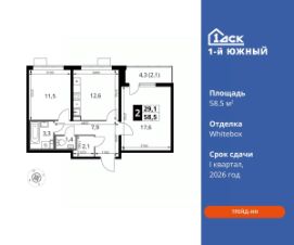 Максимальные скидки при 100% оплате.Trade-in вместо первоначального взноса - выгодно обменяйте вашу квартиру на новую!Прямая продажа от застройщика! Жилой Комплекс класса Комфорт плюс.Продаётся 2-к квартира номер 118 общей площадью 58.5 кв.м на 7-м этаже 25 этажного дома. Отделка Whitebox.Особенности:- Квартира доступна к покупке в Trade-In.- Просторная спальня, в которой можно разместить большую кровать.- Линейная планировка - максимальная функциональность и удобство.- Раздельный санузел- Гостевой санузел - комфорт и удобство для ваших гостей.- Просторная мягкая зона - комфорт и уют для отдыха всей семьи.- Возможность добавить спальное место - дополнительный комфорт для гостей.- Просторная кухня - место для семейных ужинов и кулинарных экспериментов.- Ограниченное количество квартир на этаже - комфорт и уют без лишней суеты.- Гардеробная - удобство для хранения и организации вещей.- Просторная лоджия - идеальное место для уютных вечеров.- Вид из окна: двор- МЦД5 в пешей доступности- Квартал с южным садом- Свои 3 детских сада и 2 большие школыКвартира с предчистовой отделкой (White box). Вам не придётся заниматься черновыми трудоёмкими работами, а чистовую отделку и дизайн сделаете по своему вкусу.Расположение комплекса: Одно из преимуществ проектов 1- ДСК - большие застекленные лоджии. Другое преимущество - честный евро-формат. Во всем проекте предусмотрена система ''Умный дом''. В состав устанавливаемого пакета устройств входит: WiFi реле для управления группами потребителей, беспроводной кран перекрытия с эл. приводом, беспроводной сенсор протечки, Яндекс Станция Мини.Его расположение можно назвать удачным за счет транспортной доступности и близости к природным объектам. По соседству лес, а в каждом дворе плодовые деревья. Весной квартал окутывает бело-розовое облако: это цветут яблони, груши, сливы. К августу в воздух наполняется ароматом созревших плодов. Зимой среди покрытых инеем деревьев протянулась лыжня.Транспортная доступность:- Общественный транспорт: Действующая ж/д станция Булатниково (в перспективе будущая МДЦ D5) в пешей доступности, всего 10-12 минут.- Личный автотранспорт:Удобный выезд на трассу М4-Дон в сторону Москвы и области - 850 м, до МКАД - 1 кмВнутренняя инфраструктура:Красивые продуманные подъезды - еще одно преимущество проекта 1-й Южный. Вход в сквозные подъезды есть и с улицы, и со двора. Благодаря сплошному остеклению в них всегда светло и уютно. Подъезды расположены на уровне земли, поэтому и молодым родителям с коляской, и жильцам с ограниченными возможностями вход и выход неудобств не доставят.В помещении предусмотрено место под стойку ресепшен с выводом инженерных сетей. Если жильцы решат на общем собрании, что необходим охранник или консьерж, организовать для них рабочее место можно быстро и с минимальными затратами. В подъездах предусмотрены уборные для детей и взрослых. Колясочные в каждом подъезде позволяют поддерживать порядок и чистоту на этажах. На случай прогулки с четв