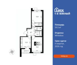 Максимальные скидки при 100% оплате.Trade-in вместо первоначального взноса - выгодно обменяйте вашу квартиру на новую!Прямая продажа от застройщика! Жилой Комплекс класса Комфорт плюс.Продаётся 2-к квартира номер 617 общей площадью 59.5 кв.м на 12-м этаже 24 этажного дома. Отделка Whitebox.Особенности:- Квартира доступна к покупке в Trade-In.- Просторная спальня, в которой можно разместить большую кровать.- Распашная планировка - отличное сочетание удобства и свободы.- Раздельный санузел- Линейная кухня - функциональность и практичность в одном решении.- Просторная кухня - место для семейных ужинов и кулинарных экспериментов.- Стандартное количество квартир на этаже - оптимальный выбор для городской жизни.- Гардеробная - удобство для хранения и организации вещей.- Лоджия - уютное место для отдыха и тишины.- Вид из окна: двор- Вид из окна: улица- МЦД5 в пешей доступности- Квартал с южным садом- Свои 3 детских сада и 2 большие школыКвартира с предчистовой отделкой (White box). Вам не придётся заниматься черновыми трудоёмкими работами, а чистовую отделку и дизайн сделаете по своему вкусу.Расположение комплекса: Одно из преимуществ проектов 1- ДСК - большие застекленные лоджии. Другое преимущество - честный евро-формат. Во всем проекте предусмотрена система ''Умный дом''. В состав устанавливаемого пакета устройств входит: WiFi реле для управления группами потребителей, беспроводной кран перекрытия с эл. приводом, беспроводной сенсор протечки, Яндекс Станция Мини.Его расположение можно назвать удачным за счет транспортной доступности и близости к природным объектам. По соседству лес, а в каждом дворе плодовые деревья. Весной квартал окутывает бело-розовое облако: это цветут яблони, груши, сливы. К августу в воздух наполняется ароматом созревших плодов. Зимой среди покрытых инеем деревьев протянулась лыжня.Транспортная доступность:- Общественный транспорт: Действующая ж/д станция Булатниково (в перспективе будущая МДЦ D5) в пешей доступности, всего 10-12 минут.- Личный автотранспорт:Удобный выезд на трассу М4-Дон в сторону Москвы и области - 850 м, до МКАД - 1 кмВнутренняя инфраструктура:Красивые продуманные подъезды - еще одно преимущество проекта 1-й Южный. Вход в сквозные подъезды есть и с улицы, и со двора. Благодаря сплошному остеклению в них всегда светло и уютно. Подъезды расположены на уровне земли, поэтому и молодым родителям с коляской, и жильцам с ограниченными возможностями вход и выход неудобств не доставят.В помещении предусмотрено место под стойку ресепшен с выводом инженерных сетей. Если жильцы решат на общем собрании, что необходим охранник или консьерж, организовать для них рабочее место можно быстро и с минимальными затратами. В подъездах предусмотрены уборные для детей и взрослых. Колясочные в каждом подъезде позволяют поддерживать порядок и чистоту на этажах. На случай прогулки с четвероногим питомцем в непогоду в подъездах устроены лапомойки. Во дворах и на общественных территориях 1-ого Южного ст