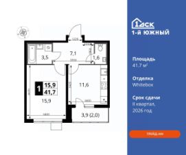 Максимальные скидки при 100% оплате.Trade-in вместо первоначального взноса - выгодно обменяйте вашу квартиру на новую!Прямая продажа от застройщика! Жилой Комплекс класса Комфорт плюс.Продаётся 1-к квартира номер 741 общей площадью 41.7 кв.м на 10-м этаже 24 этажного дома. Отделка Whitebox.Особенности:- Квартира доступна к покупке в Trade-In.- Линейная планировка - максимальная функциональность и удобство.- Раздельный санузел- Линейная кухня - функциональность и практичность в одном решении.- Ограниченное количество квартир на этаже - комфорт и уют без лишней суеты.- Лоджия - уютное место для отдыха и тишины.- Вид из окна: улица- МЦД5 в пешей доступности- Квартал с южным садом- Свои 3 детских сада и 2 большие школыКвартира с предчистовой отделкой (White box). Вам не придётся заниматься черновыми трудоёмкими работами, а чистовую отделку и дизайн сделаете по своему вкусу.Расположение комплекса: Одно из преимуществ проектов 1- ДСК - большие застекленные лоджии. Другое преимущество - честный евро-формат. Во всем проекте предусмотрена система ''Умный дом''. В состав устанавливаемого пакета устройств входит: WiFi реле для управления группами потребителей, беспроводной кран перекрытия с эл. приводом, беспроводной сенсор протечки, Яндекс Станция Мини.Его расположение можно назвать удачным за счет транспортной доступности и близости к природным объектам. По соседству лес, а в каждом дворе плодовые деревья. Весной квартал окутывает бело-розовое облако: это цветут яблони, груши, сливы. К августу в воздух наполняется ароматом созревших плодов. Зимой среди покрытых инеем деревьев протянулась лыжня.Транспортная доступность:- Общественный транспорт: Действующая ж/д станция Булатниково (в перспективе будущая МДЦ D5) в пешей доступности, всего 10-12 минут.- Личный автотранспорт:Удобный выезд на трассу М4-Дон в сторону Москвы и области - 850 м, до МКАД - 1 кмВнутренняя инфраструктура:Красивые продуманные подъезды - еще одно преимущество проекта 1-й Южный. Вход в сквозные подъезды есть и с улицы, и со двора. Благодаря сплошному остеклению в них всегда светло и уютно. Подъезды расположены на уровне земли, поэтому и молодым родителям с коляской, и жильцам с ограниченными возможностями вход и выход неудобств не доставят.В помещении предусмотрено место под стойку ресепшен с выводом инженерных сетей. Если жильцы решат на общем собрании, что необходим охранник или консьерж, организовать для них рабочее место можно быстро и с минимальными затратами. В подъездах предусмотрены уборные для детей и взрослых. Колясочные в каждом подъезде позволяют поддерживать порядок и чистоту на этажах. На случай прогулки с четвероногим питомцем в непогоду в подъездах устроены лапомойки. Во дворах и на общественных территориях 1-ого Южного столько всего интересного для юных обитателей. Собственные 3 детских сада и 2 больших школы буквально ''под окнами''Изюминка проекта - пешеходный бульвар-дендрарий, он идеален для семейных прогулок. По сторонам прогулочной зоны