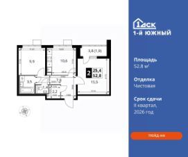 2-к, Первый Южный ЖК, 10 Показать на карте