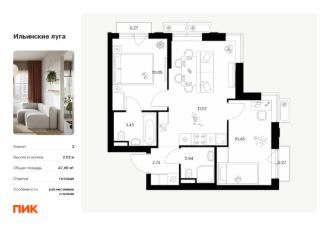Продаётся 2-комн. квартира площадью 56,37 кв.м на 6 этаже 9 этажного дома (Корпус 4.1, Секция 5) проекта ПИК Ильинские луга. Светлый просторный подъезд на уровне земли, функциональная планировка, большие окна, c отделкой. Жилой район ''Ильинские луга'' находится в 10 километрах от МКАД по Новорижскому шоссе, в 20 минутах на автомобиле от станций метро ''Волоколамская'', ''Тушинская'' и ''Строгино''. В будущем ближе к проекту, в 9 минутах пути на машине, откроется станция ''Ильинская'' Рублёво-Архангельской линии, которая будет соединять Арбатско-Покровскую линию и Большую кольцевую линию.Сейчас в квартале начались продажи в корпусах 3.2, 3.3, 3.4, 3.5 и 3.6.''Ильинские луга'' — масштабный проект, в который входит девять детских садов, четыре школы и поликлиника. Он строится в престижном и экологичном районе среди лесов и памятников природы. За 5 минут от жилого квартала можно доехать до Рублёво-Успенского шоссе, а за 30 минут — до центра Москвы. До крупного торгового центра ''РИГАМОЛЛ'' всего 5 минут на автомобиле, а до ТЦ ''Твой дом'' и гипермаркета ''Глобус'' — 10 минут.В ''Ильинских лугах'' строятся только девятиэтажные дома — такая архитектура соответствует спокойной жизни за городом. В каждом дворе-парке есть места для отдыха, детские и спортивные площадки. А ещё, здесь уже открыт большой PlayHub ''Гравити'' — современное игровое пространство с космической тематикой, холмами, зонами для игр и отдыха жителей любого возраста.На первых этажах уже работают магазины, кафе и пекарни.Места для отдыха от ''Ильинских лугов'' тоже недалеко: 10 минут на машине — и вы в музее-усадьбе ''Архангельское''. Также рядом находится Лохин остров — памятник природы, где водятся речные черепахи, есть места для кемпинга и возможность сплавиться по реке. Артикул 1016192 (Застройщик ООО ''СЗ ''ГРАДОЛИМП'')
