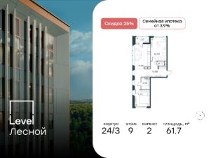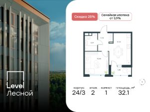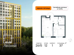 Цена указана с учётом скидки при 100%-й оплате, несубсидированной ипотеке, рассрочке (кроме программы ''Рассрочка 0%''). Субсидированная семейная ипотека. Полная стоимость кредита 20,963 - 23,237% годовых. Ставка 3,9% годовых. Первоначальный взнос от 20,01%. Сумма кредита до 12 млн. руб.В районе, утопающем в густой зелени лесов, многочисленных парков и скверов, продаётся 1-комнатная квартира площадью 37.00 кв.м с отделкой white box. Квартира расположена на 12 этаже в жилом комплексе комфорт-класса Level Лесной (компания Level Group/Левел групп). Отличная транспортная доступность:- 25 мин. пешком до станции метро ''Пятницкое шоссе'',- 28 мин. на автобусе до станции метро и МЦД-2 ''Волоколамская'',- 11 мин. на авто до МКАД,- 25 мин. на авто до ТТК. Продуманный архитектурный проект:- Концепция проекта Level Лесной от бюро СПИЧ,- Высотность комплекса до 15 этажей с уникальными видами на лесные массивы и город, - Высота потолков до 3 м,- Современные окна высотой до 1,6 м, в части квартир предусмотрены окна в пол. Высота подоконников 0,6 м, Расположение:Level Лесной строится в зелёной зоне ближайшего Подмосковья, г.о. Красногорск в посёлке Отрадное. Шаговая и автомобильная доступность до метро и больших транспортных артерий города. За 25 минут вы дойдёте до станции метро ''Пятницкое шоссе'', а за 20 минут на машине сможете доехать до станции метро ''Тушинская''. Район окружен роскошной зеленью лесов и парковых зон, занимающих территорию свыше 1 000 гектаров. Помимо благоприятной экологии, здесь множество возможностей для активного отдыха и поддержания физической формы. Облагороженная территории с полностью развитой инфраструктурой. На территории проекта находится детский сад и школа ''Светлые Горы'', которая входит в список лучших частных школ от Forbes Education (по данным на 2023г.). Кроме того, в пешей доступности расположено ещё 8 детских садов, а также запланировано открытие современной муниципальной школы. В непосредственной близости находятся сетевые супермаркеты и локальные магазины, аптеки, клиники, почта, библиотека, салоны красоты, рестораны, спортивные и творческие секции, развивающие детские центры. В 12 минутах пешком расположен торговый парк ''Отрада'' с продуктовым и строительным гипермаркетами, магазинами, кинотеатром и развлечениями для детей. Внутренняя инфраструктура:Мы знаем, как важно, чтобы магазины и сервисы были всегда рядом. В сданных корпусах Level Лесной уже расположена полностью готовая развитая инфраструктура. На первых этажах корпуса 27 предусмотрено ещё 14 коммерческих помещений. Благоустройство:Продуманное пространство и аура приватного европейского городка рождают чувство лёгкости и расслабления у каждого, кто попадает на территорию проекта. Концепцию общественных площадок разработали в партнёрстве два архитектурных бюро: Highlight Architecture и SCAPE. В безопасных дворах без машин каждый обязательно найдёт себе место для вдохновения, отдыха и спорта.