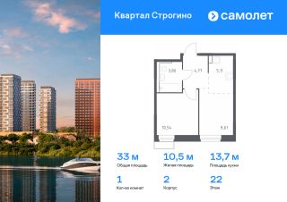 Предлагается 1-комнатная квартира комфорт-класса 33,01 кв.м в корпусе 2 на 22 этаже, в ЖК ''Квартал Строгино''Квартира без отделки. Доступность опции ''отделка'' и возможность комплектации мебелью и декором уточняйте у застройщика.Приобрести квартиру возможно по специальным акциям от застройщика, с текущими условиями акций можно ознакомиться в блоке Акций.Цена динамическая и может отличаться, уточняйте актуальность у застройщика.В жилом комплексе ''Квартал Строгино'' вас ждет широкий выбор досуга. Рядом МКАД и выезд на Новорижское шоссе и станции метро ''Строгино'' и ''Мякинино''. В пешей доступности — Живописная бухта, можно доехать до ''Липовой Рощи'' и ''Серебряного бора''. На территории комплекса будут 2 детских сада, школа и поликлиника. Двор-парк с площадками, велодорожками и паркингами. В лобби есть помещения для колясок. Квартиры с готовой отделкой и видом на бухту.