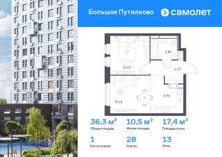 Строим кварталы для жизни с заботой о будущем. Предлагается 1-комнатная квартира комфорт-класса 36,28 кв.м в корпусе 28 на 13 этаже, в ЖК ''Большое Путилково''Квартира без отделки. Доступность опции ''отделка'' и возможность комплектации мебелью и декором уточняйте у застройщика.Приобрести квартиру возможно по специальным акциям от застройщика, с текущими условиями акций можно ознакомиться в блоке ''Акций''.Цена динамическая и может отличаться, уточняйте актуальность у застройщика.''Большое Путилково'' — масштабный жилой комплекс рядом с Алешкинским и Новогорским лесопарками. Мы уже построили и открыли 3 детских сада и школу, на первых этажах корпусов работают магазины, аптеки, кафе и пекарни. Удобное расположение проекта позволяет всего за 10 минут добраться до 4 станций метро.Во дворах обустроены детские площадки и зоны для отдыха. Все квартиры сдаются с готовой отделкой - переезжайте сразу после получения ключей!