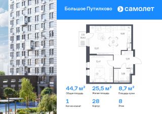 Строим кварталы для жизни с заботой о будущем. Предлагается 1-комнатная квартира комфорт-класса 44,73 кв.м в корпусе 28 на 8 этаже, в ЖК ''Большое Путилково''Квартира с чистовой отделкой. Доступность дополнительных опций уточняйте у застройщика.Приобрести квартиру возможно по специальным акциям от застройщика, с текущими условиями акций можно ознакомиться в блоке ''Акций''.Цена динамическая и может отличаться, уточняйте актуальность у застройщика.''Большое Путилково'' — масштабный жилой комплекс рядом с Алешкинским и Новогорским лесопарками. Мы уже построили и открыли 3 детских сада и школу, на первых этажах корпусов работают магазины, аптеки, кафе и пекарни. Удобное расположение проекта позволяет всего за 10 минут добраться до 4 станций метро.Во дворах обустроены детские площадки и зоны для отдыха. Все квартиры сдаются с готовой отделкой - переезжайте сразу после получения ключей!