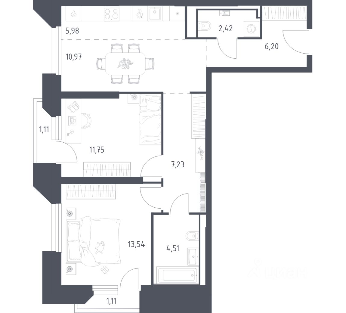 54 м² · Этаж 23 из 28