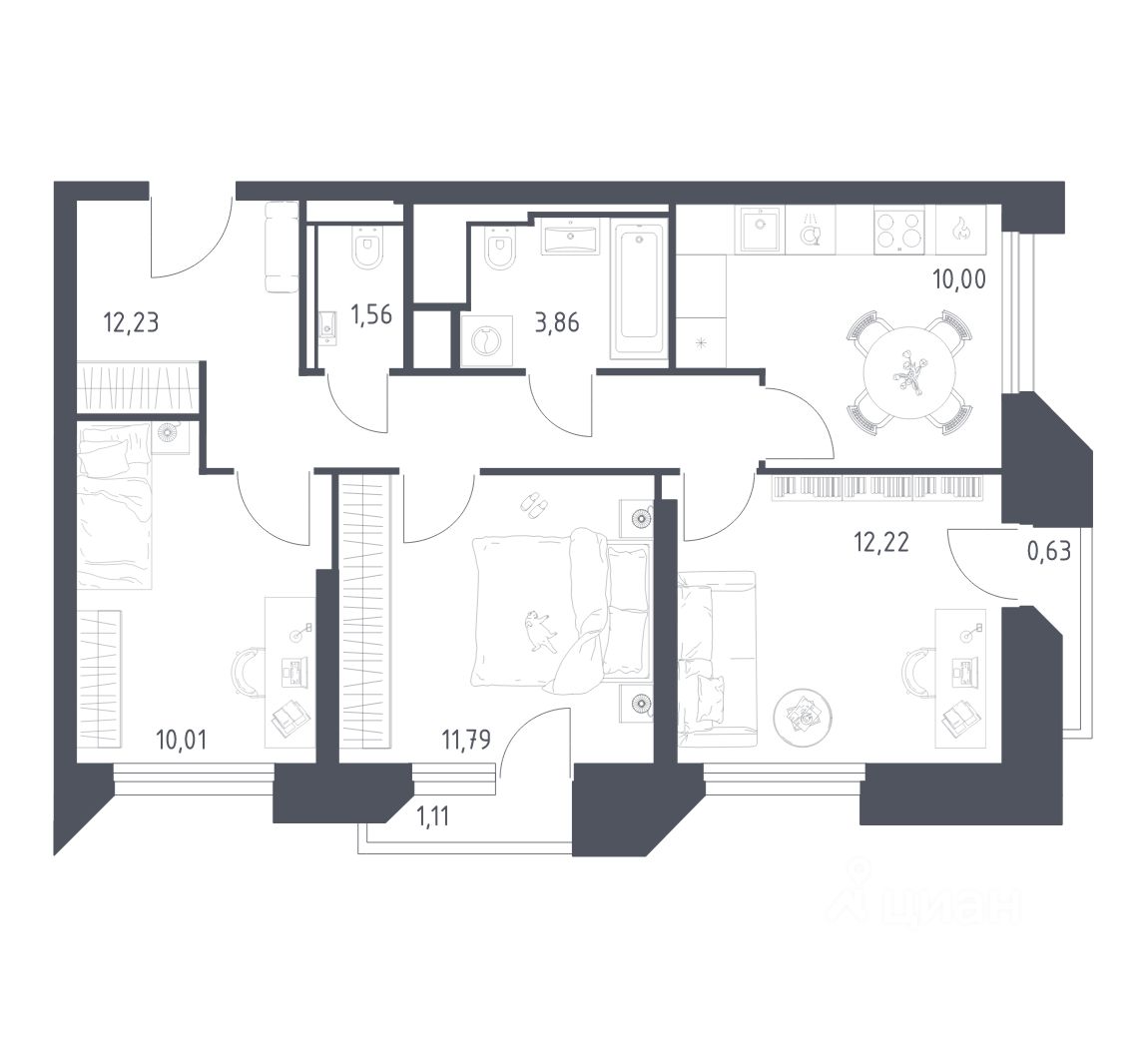 Трехкомнатные