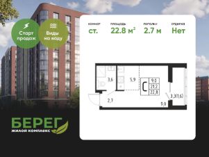 Продаётся студия в строящемся доме (Корпус 4 (2 очередь)), общей площадью 22.80 кв.м., на 2 этаже. ЖК ''Берег'' расположен в живописном месте на берегу канала им. Москвы с хорошей экологией, вдали от шума в окружении леса и парков. Это микрорайон Клязьма-Старбеево, в квартале Международный, городского округа Химки. Проект класса ''Комфорт +'' предлагает отличные условия для жизни в окружении природы и современной инфраструктуры. На территории будут велопарковки, воркаут, спорт площадка, детская площадка с игровыми комплексами для детей младшего и старшего возраста, площадка отдыха, озеленение с разнообразными деревьями и кустарниками. Каждый день дарит новые впечатления и новые возможности не только для спокойной жизни, но развития и отдыха.