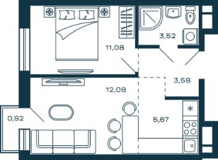 Продаются 1-комнатные апартаменты в строящемся доме (Корпус 20), срок сдачи: IV-кв. 2026, общей площадью 46.7 кв.м., на 11 этаже. Квартал для жизни ''Спутник'' обладает хорошей транспортной доступностью. В 1,7 км от него — станция метро ''Строгино'', в 3 км — ''Мякинино''. Он находится вблизи удобной транспортной развязки, и водители смогут использовать Новорижское и Мякининское шоссе. Также квартал имеет собственный выезд на МКАД.