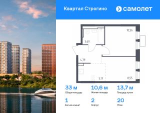 Продаётся 1-комнатная квартира в строящемся доме (Корпус 2), срок сдачи: IV-кв. 2025, общей площадью 47.47 кв.м., на 3 этаже. Многоэтажный жилой комплекс с офисными помещениями и подземным гаражом стоянкой по адресу: Московская область, Красногорский район, у д. Бузланово