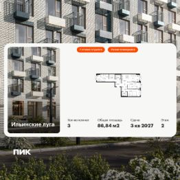 Продаётся 3-комн. квартира площадью 86,84 кв.м на 2 этаже 9 этажного дома (Корпус 4.1, Секция 3) проекта ПИК Ильинские луга. Светлый просторный подъезд на уровне земли, функциональная планировка, большие окна, c отделкой. Жилой район ''Ильинские луга'' находится в 10 километрах от МКАД по Новорижскому шоссе, в 20 минутах на автомобиле от станций метро ''Волоколамская'', ''Тушинская'' и ''Строгино''. В будущем ближе к проекту, в 9 минутах пути на машине, откроется станция ''Ильинская'' Рублёво-Архангельской линии, которая будет соединять Арбатско-Покровскую линию и Большую кольцевую линию.Сейчас в квартале начались продажи в корпусах 3.2, 3.3, 3.4, 3.5 и 3.6.''Ильинские луга'' — масштабный проект, в который входит девять детских садов, четыре школы и поликлиника. Он строится в престижном и экологичном районе среди лесов и памятников природы. За 5 минут от жилого квартала можно доехать до Рублёво-Успенского шоссе, а за 30 минут — до центра Москвы. До крупного торгового центра ''РИГАМОЛЛ'' всего 5 минут на автомобиле, а до ТЦ ''Твой дом'' и гипермаркета ''Глобус'' — 10 минут.В ''Ильинских лугах'' строятся только девятиэтажные дома — такая архитектура соответствует спокойной жизни за городом. В каждом дворе-парке есть места для отдыха, детские и спортивные площадки. А ещё, здесь уже открыт большой PlayHub ''Гравити'' — современное игровое пространство с космической тематикой, холмами, зонами для игр и отдыха жителей любого возраста.На первых этажах уже работают магазины, кафе и пекарни.Места для отдыха от ''Ильинских лугов'' тоже недалеко: 10 минут на машине — и вы в музее-усадьбе ''Архангельское''. Также рядом находится Лохин остров — памятник природы, где водятся речные черепахи, есть места для кемпинга и возможность сплавиться по реке. Артикул 1015926 (Застройщик ООО ''СЗ ''ГРАДОЛИМП'')