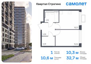 Предлагается 1-комнатная квартира комфорт-класса 32,67 кв.м в корпусе 2 на 4 этаже, в ЖК ''Квартал Строгино''Квартира с чистовой отделкой. Доступность дополнительных опций уточняйте у застройщика.Планировкой предусмотрены:Коридор - 4,66 м²Кухня - 10,57 м²Жилая_комната - 10,26 м²СУ - 3,79 м²Гардеробная - 3,39 м²Приобрести квартиру возможно по специальным акциям от застройщика, с текущими условиями акций можно ознакомиться в блоке Акций.Цена динамическая и может отличаться, уточняйте актуальность у застройщика.В жилом комплексе ''Квартал Строгино'' вас ждет широкий выбор досуга. Рядом МКАД и выезд на Новорижское шоссе и станции метро ''Строгино'' и ''Мякинино''. В пешей доступности — Живописная бухта, можно доехать до ''Липовой Рощи'' и ''Серебряного бора''. На территории комплекса будут 2 детских сада, школа и поликлиника. Двор-парк с площадками, велодорожками и паркингами. В лобби есть помещения для колясок. Квартиры с готовой отделкой и видом на бухту.