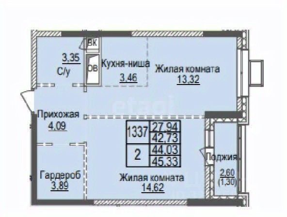 42 м² · Этаж 13 из 17