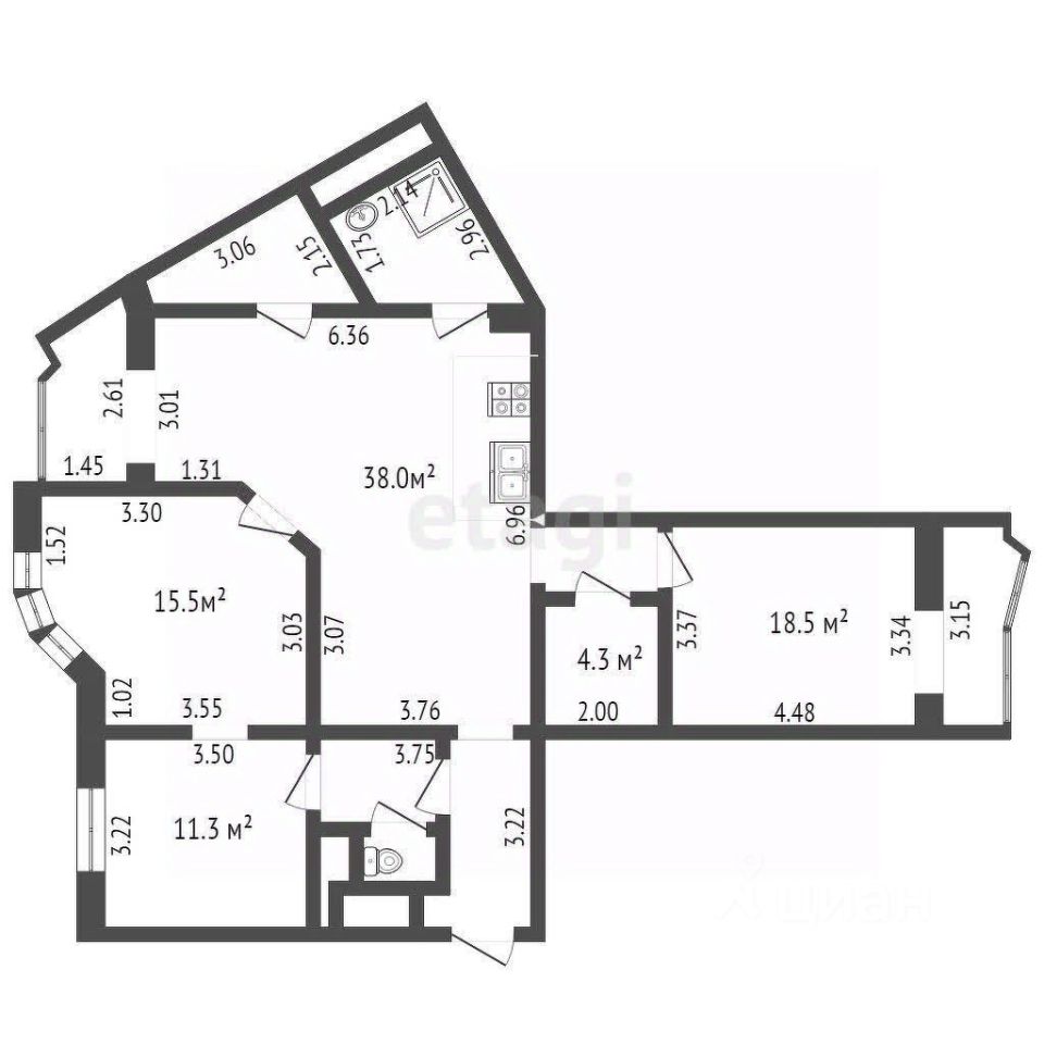 155 м² · Этаж 3 из 21