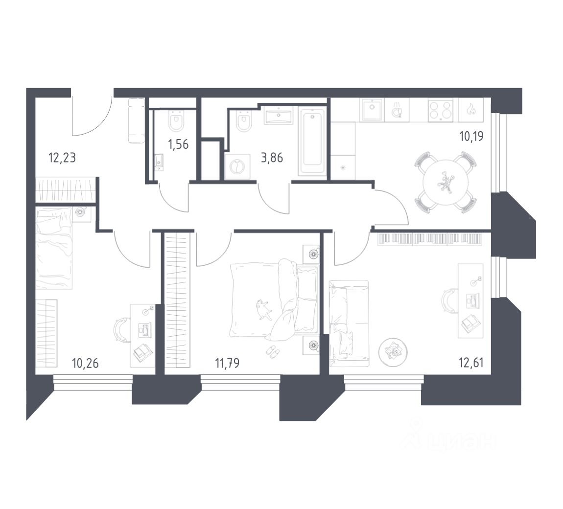 В продаже 3-комнатная квартира в корпусе 2 ЖК 'Квартал Строгино'. Квартира располагается на 19 этаже, общая площадь 76.15 м2.