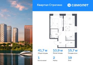 Предлагается 1-комнатная квартира комфорт-класса 41,74 кв.м в корпусе 2 на 19 этаже, в ЖК ''Квартал Строгино''Квартира без отделки. Доступность опции ''отделка'' и возможность комплектации мебелью и декором уточняйте у застройщика.Приобрести квартиру возможно по специальным акциям от застройщика, с текущими условиями акций можно ознакомиться в блоке Акций.Цена динамическая и может отличаться, уточняйте актуальность у застройщика.В жилом комплексе ''Квартал Строгино'' вас ждет широкий выбор досуга. Рядом МКАД и выезд на Новорижское шоссе и станции метро ''Строгино'' и ''Мякинино''. В пешей доступности — Живописная бухта, можно доехать до ''Липовой Рощи'' и ''Серебряного бора''. На территории комплекса будут 2 детских сада, школа и поликлиника. Двор-парк с площадками, велодорожками и паркингами. В лобби есть помещения для колясок. Квартиры с готовой отделкой и видом на бухту.