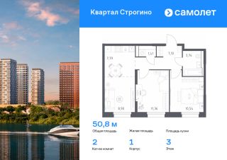 Предлагается 2-комнатная квартира комфорт-класса 50,84 кв.м в корпусе 1 на 3 этаже, в ЖК ''Квартал Строгино''Квартира с чистовой отделкой. Доступность дополнительных опций уточняйте у застройщика.Приобрести квартиру возможно по специальным акциям от застройщика, с текущими условиями акций можно ознакомиться в блоке Акций.Цена динамическая и может отличаться, уточняйте актуальность у застройщика.В жилом комплексе ''Квартал Строгино'' вас ждет широкий выбор досуга. Рядом МКАД и выезд на Новорижское шоссе и станции метро ''Строгино'' и ''Мякинино''. В пешей доступности — Живописная бухта, можно доехать до ''Липовой Рощи'' и ''Серебряного бора''. На территории комплекса будут 2 детских сада, школа и поликлиника. Двор-парк с площадками, велодорожками и паркингами. В лобби есть помещения для колясок. Квартиры с готовой отделкой и видом на бухту.