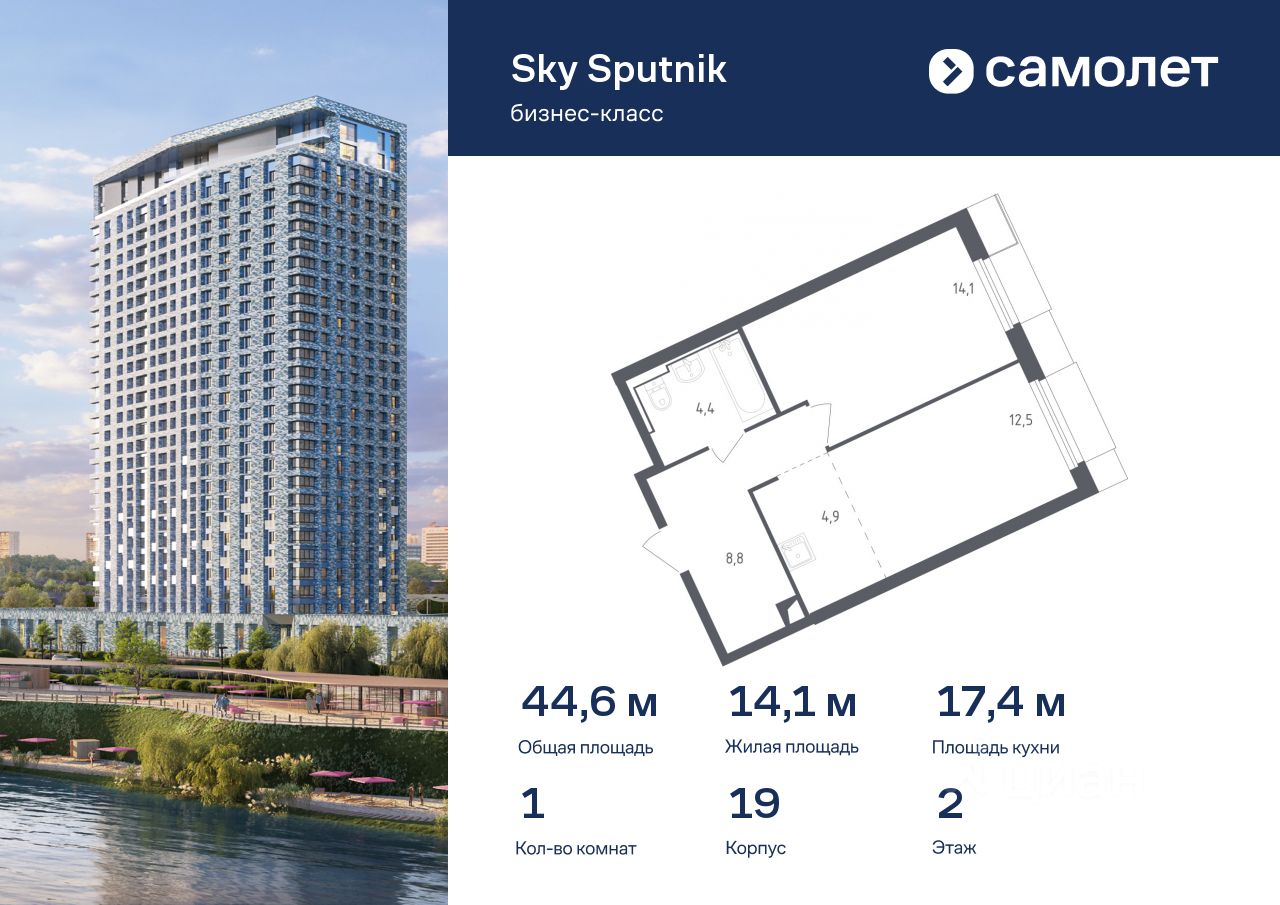 Предлагаются 1-комнатные апартаменты бизнес-класса 44,63 кв.м в корпусе 19 на 2 этаже, в Sky Sputnik Апартаменты без отделки. Доступность опции ''отделка'' и возможность комплектации мебелью и декором уточняйте у застройщика. Прописка не предусмотрена в рамках юридического статуса - апартаменты. Приобрести апартаменты возможно по специальным акциям от застройщика, с текущими условиями акций можно ознакомиться в блоке Акций. Цена динамическая и может отличаться, уточняйте актуальность у застройщика. Квартал находится на северо-западе Московской области, в 200 км от МКАД. Из окон домов открывается потрясающий вид на парк ''Липовая Роща'' и Живописную бухту. Уже открыта вся необходимая инфраструктура: 3 детских сада, частная школа, аптеки, коворкинги, магазины и кафе. В 2027 году рядом с проектом появится станция метро ''Липовая Роща''. До станции метро Строгино можно дойти за 25 минут. Все апартаменты сдаются с отделкой и мебелью.