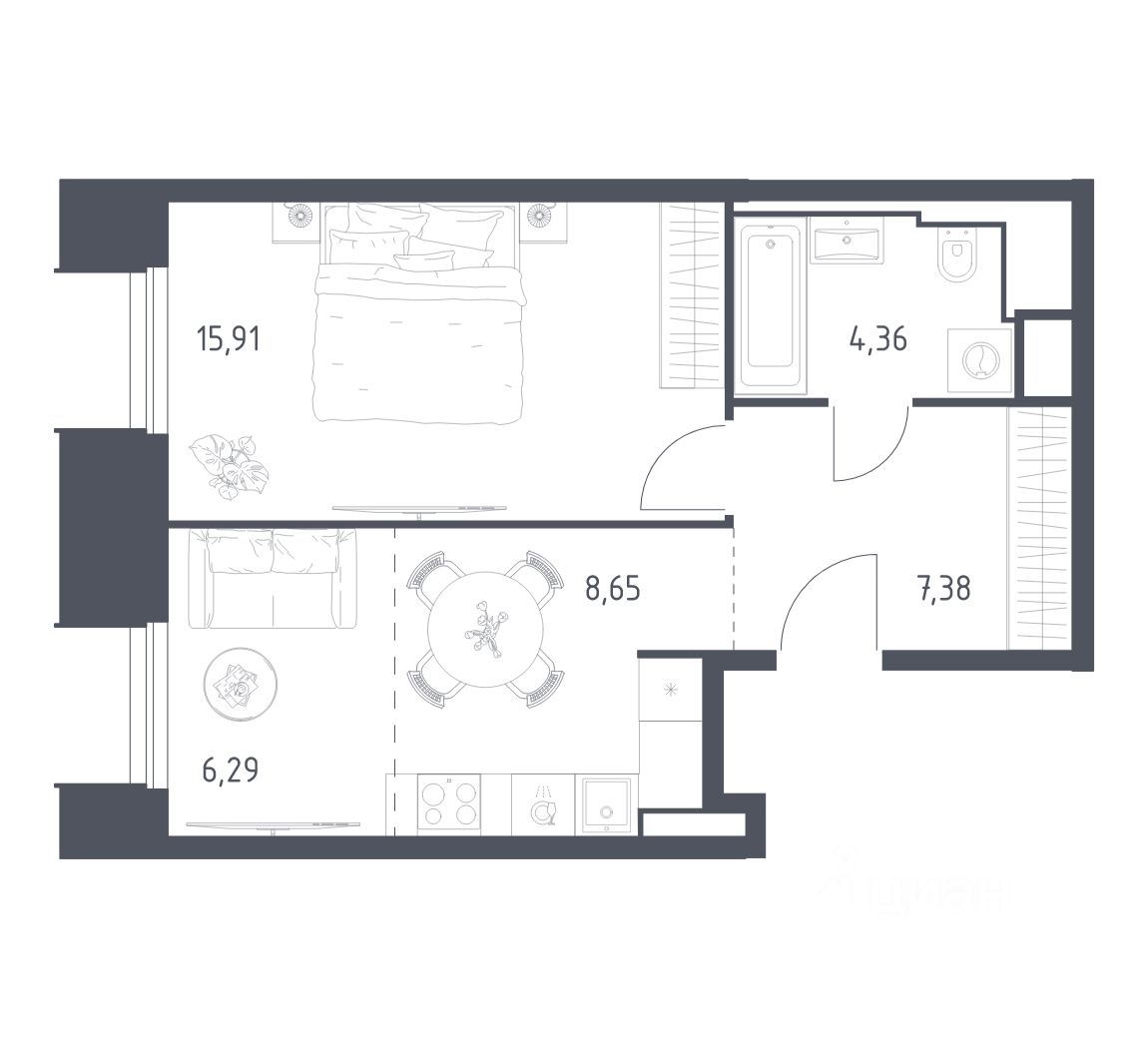 37 м² · Этаж 7 из 24