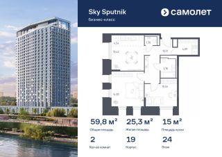Строим кварталы для жизни с заботой о будущем. Предлагаются 2-комнатные апартаменты бизнес-класса 59,79 кв.м в корпусе 19 на 24 этаже, в Sky SputnikАпартаменты без отделки. Доступность опции ''отделка'' и возможность комплектации мебелью и декором уточняйте у застройщика.Прописка не предусмотрена в рамках юридического статуса - апартаменты.Приобрести апартаменты возможно по специальным акциям от застройщика, с текущими условиями акций можно ознакомиться в блоке ''Акций''.Цена динамическая и может отличаться, уточняйте актуальность у застройщика.Квартал находится на северо-западе Московской области, в 200 км от МКАД. Из окон домов открывается потрясающий вид на парк ''Липовая Роща'' и Живописную бухту. Уже открыта вся необходимая инфраструктура: 3 детских сада, частная школа, аптеки, коворкинги, магазины и кафе. В 2027 году рядом с проектом появится станция метро ''Липовая Роща''. До станции метро Строгино можно дойти за 25 минут. Все апартаменты сдаются с отделкой и мебелью.
