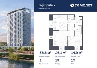 Строим кварталы для жизни с заботой о будущем. Предлагаются 2-комнатные апартаменты бизнес-класса 58,58 кв.м в корпусе 19 на 10 этаже, в Sky SputnikАпартаменты без отделки. Доступность опции ''отделка'' и возможность комплектации мебелью и декором уточняйте у застройщика.Прописка не предусмотрена в рамках юридического статуса - апартаменты.Приобрести апартаменты возможно по специальным акциям от застройщика, с текущими условиями акций можно ознакомиться в блоке ''Акций''.Цена динамическая и может отличаться, уточняйте актуальность у застройщика.Квартал находится на северо-западе Московской области, в 200 км от МКАД. Из окон домов открывается потрясающий вид на парк ''Липовая Роща'' и Живописную бухту. Уже открыта вся необходимая инфраструктура: 3 детских сада, частная школа, аптеки, коворкинги, магазины и кафе. В 2027 году рядом с проектом появится станция метро ''Липовая Роща''. До станции метро Строгино можно дойти за 25 минут. Все апартаменты сдаются с отделкой и мебелью.