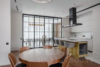 197782 Резиденция РублевоПредлагается стильный таунхаус площадью 360 кв.м. на участке 6 соток в элитном охраняемом поселке ''Резиденция Рублево''. Таунхаус меблирован, укомплектован всей необходимой техникой и полностью готов к проживанию. Интерьеры выдержаны в едином стиле. Просторные помещения, высокие потолки, большое количество остекления. Террасы и живописные виды на парк. В планировке предусмотрено 4 спальни с санузлами и гардеробными, кабинет (можно использовать как гостевую спальню), большое количество террас и балконов, гостиная с камином и ТВ-зоной, кухня, столовая, патио с зоной отдыха и барбекю. Вход в котельную организован с улицы, ее можно использовать для хранения садовой техники. Под всей площадью дома есть подвал с высотой потолков 1,6 м.Планировка дома: 1 этаж: коридор с гардеробом для верхней одежды, гараж на 2 автомобиля, гостевая спальня со своим санузлом, гостевой санузел, кладовка с постирочной, кухня-гостиная с действующим камином и выходом на патио,2 этаж: мастер-спальня с выходом на террасу, спальня со своим санузлом и выходом на террасу, гардеробная, кабинет (можно использовать как спальню), спальня с выходом на террасу, санузел. Звоните сейчас, чтобы узнать подробную информацию и записаться на показ! Будем рады Вашему звонку.