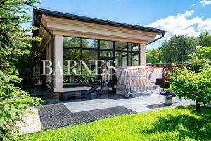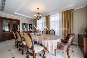 ID: 576605Трёхэтажный загородный дом площадью 600 кв.м. расположен на участке в 20 соток с живописным ландшафтным дизайном на территории охраняемого коттеджного посёлка ''Прозорово''. При строительстве и отделке использовались высококачественные натуральные материалы. Интерьер особняка характеризуется строгой элегантностью, в нём представлена изысканная мебель, эксклюзивные аксессуары и современное оборудование. Отдельно построена крытая беседка с зоной барбекю и предусмотрена парковка.На первом этаже расположены прихожая, гардеробная, санузел, гостиная, кухня, столовая и терраса. Второй этаж включает спальню с гардеробной и санузлом, а также две спальни с санузлами, кабинет и холл. Цокольный этаж занимает бассейн, сауна, санузел и прачечная.Коттеджный посёлок ''Прозорово'' — элитное место для загородного отдыха, где проживают состоятельные люди, желающие насладиться чистым воздухом и природой вдали от городской суеты. Местность расположена в 15 километрах от МКАД по Ильинскому шоссе и занимает общую площадь 8 гектаров. Поселок окружён густым лесом, рядом протекает река. Все здания выполнены в уникальном стиле, включая коттеджи в стилях модерн, ампир, премиум, а также интересные постройки в техниках ''Усадьба'' и ''Англия''. Представлено пять неоклассических проектов. При строительстве использовались только натуральные материалы и высококачественный кирпич, что позволило создать настоящие произведения архитектурного искусства.Номер объекта: #1/576605/14501