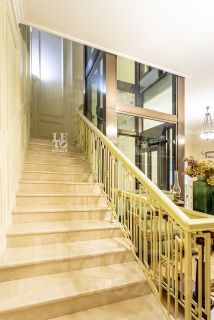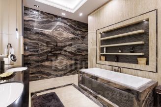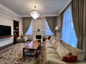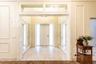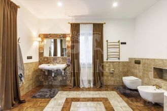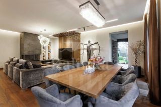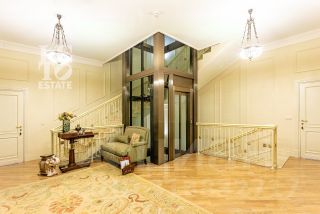 Арт. 100704505 Вашему вниманию представляется дом с лифтом площадью 750 кв.м с отделкой ''под ключ'' в охраняемом коттеджном поселке Новахово, расположенного рядом с Москвой в 9 км от МКАД по Новорижскому шоссе. Дом построен в классическом стиле. Фасад дома украшен барельефами, рустами, входная группа выделена колоннами, на балконах использованы балюстрады. Выполнена фасадная шпаклевка. В доме установлено два котла Buderus, установлена система водоочистки, предусмотрена приточно-вытяжная вентиляция и система пожарной сигнализации. Отделка выполнена с использованием элементов из дерева и натурального камня. В каждой спальне предусмотрен индивидуальный санузел. Мансардный этаж отведен под зону отдыха с бильярдной. Лифтовая кабина и шахта стеклянные. Лифт поднимается до третьего этажа.Участок площадью 19 соток прямоугольной формы. На участке проведены ландшафтные работы, по периметру растут ели и сосны, есть зона отдыха с уличным бассейном (длина 12м) и патио с маркизой. В поселке есть все центральные коммуникации (электричество, водоснабжение, канализация, газ).На территории построен отдельностоящий двухэтажный хозблок площадью 105 кв. м в общей стилистике с домом, в котором есть несколько комнат для персонала. Планировка:Первый этаж - парадный холл с лифтом, гостиная, каминный зал, кухня-столовая, санузел, гараж на два машиноместа.На втором этаже: 4 спальни с ванными комнатами и 3 санузлами, библиотека.На третьем этаже: кабинет, бильярдная с санузлом.Коттеджный поселок Новахово располагается всего в 14 км от МКАД по Новорижскому шоссе.По дороге к нему радуют глаз окружающие его леса и пруды. Западное направление славится благоприятной экологической обстановкой. В охраняемом коттеджном поселке Новахово все необходимое для постоянного проживания: безопасность, развитая инфраструктура, отличная транспортная доступность.Новахово относится к поселкам с единой архитектурной концепцией. Все дома построены по пяти авторским проектам. Архитектура каждого дома традиционна, но при этом использованы современные технологии строительства. Это настоящее премиальное жилье — красивое, комфортное и продуманное до мелочей.Рассказ о поселке бы неполным без упоминания о ландшафтном дизайне. Широкие улицы и пешеходные дорожки украшены клумбами, газонами и фонтанами. По поселку приятно прогуливаться, наслаждаясь видами.Инфраструктура поселка.Коттеджный поселок Новахово, без преувеличений можно назвать поселком премиального уровня, который соответствует всем потребностям современного загородного жителя.На территории поселка располагаются:• детские площадки,• торговый центр с супермаркетом, химчисткой, аптекой, рестораном и пр.,• спортивно-оздоровительный комплекс ''Grand Imperial Wellness'' с бассейном и фитнес-центром.В непосредственной близости от поселка Новахово находятся такие инфраструктурные объекты как: Лицей Ковчег XXI, конный комплекс, закрытый теннисный корт, закрытая ледовая арена, медицинский центр ''Чайка'', фермерский рынок, бизнес-центр и гостиница РигаЛенд, и многое другое.Жителям коттеджного поселка Новахово также доступна услуга roomservice: вызов горничной, заказ такси, бронирование столика в ресторане и др. услуги.Как и положено поселку премиум класса, в коттеджном поселке Новахово все коммуникации центральные:• магистральный газ,• 