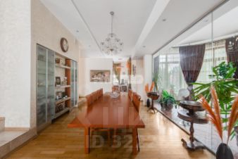 Новорижское шоссе, 12 км от МКАД. Новахово. Продается дом Дом, общей площадью 870 м.кв., расположен на участке в 22 сот. Все коммуникации - центральные. Гараж - Встроенный. Планировка: 1 этаж: холл, гардеробная, гостиная с роялем, камином и зоной домашнего кинотеатра, кабинет, кухня, 2 с/у, постирочная, кладовка, подсобное помещение, котельная, гараж на 2 м/м., 2 этаж: общая зона, мастер спальня с 3 гардеробными и ванной комнатой, блок из 2х спален с просторной гардеробной и ванной комнатой, спальня с гардеробной и с/у, гостевая спальня., Мансарда: детская игровая зона с с/у, спальня няни с гардеробной и с/у. Просторный классический особняк в обжитом поселке Новахово.В доме выполнена отделка ''под ключ''. Отапливаемый пол из натурального художественного паркета и мрамора. Лестница с коваными перилами, лепнина, потолки с ручной росписью. Техника на кухне бренда SMEG, стиральная машина Miele. Сантехника Devon&Devon, Villeroy&Boch, Hoesch. На участке: дом для проведения праздников с большим обеденным столом, барной стойкой, с/у и зоной для приготовления пищи (барбекю, мангал, раковина), дом для персонала, пост охраны, место для парковки 2х автомобилей, вольеры для собак. лот: 18400