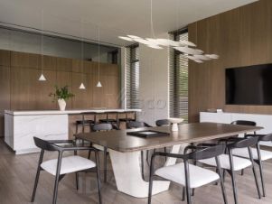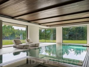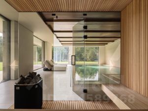 Лот 102672. Эксклюзив Vesco Realty. Коттеджный поселок ''Никольская Слобода''Maison du Soleil - новый дом в стиле минимализм общей площадью 1238 кв.м расположен в поселке Никольская слобода, самом близком из всех элитных поселков Новорижского шоссе. Особенности дома: * новый современный дом,* панорамные окна в пол,* гостиная со вторым светом и высотой потолков 7,35 м,* двусторонний камин,* лифт,* двухмаршевая парящая лестница,* спа-комплекс с переливным бассейном 11*4,5 м с противотоком, с джакузи и тропическим душем, с зоной отдыха и безбарьерным выходом на террасу, с сауной, хаммамом и массажным кабинетом, * парадная кухня с островом и зоной завтраков на 4 посадочных места,* техническая кухня и винная комната,* гараж для автомобилей на 3 м/м с с/у и техническим душем и лапомойкой для собак,* полная система автоматизации умный дом,* приточно-вытяжная вентиляция,* центральное кондиционирование с возможностью установки системы увлажнения,* автономный блок для персонала с 2 спальнями. В доме: мастер-спальня с двумя ванными и гардеробной, разделенной на зону для него и для нее, а также 4 спальни с отдельными гардеробными и ванными комнатами, спа-комплекс с бассейном/сауной/хаммамом, кабинет, хобби-комната под спортивный зал, детскую игровую или помещение для занятий. ПЛАНИРОВКА 1 этаж (772,5 кв.м)Общие помещения: прихожая (33) с гардеробной (16), двухмаршевая парящая лестница (19), гостиная со вторым светом (49) и двусторонним камином, столовая (25) с выходом на террасу (26), парадная кухня (27) с огромным островом и зоной завтрака на 4 посадочных места, техническая кухня (13) с отдельным входом с улицы, винная или сигарная комната (7), кабинет (24), гостевая спальня (19) с гардеробом (6) и ванной комнатой (6), хобби-комната (36), гараж (74) на 3 машиноместа со входом в дом через холл (10) и с/у с техническим душем (5), терраса вдоль главного (102).Спа-комплекс: бассейн (124) с выходом на террасу (41), сауна (7), хаммам (8), массажный кабинет и раздевалка с душем (16), с/у (3).Технические помещения: коридор (52) с лифтом (3), кладовая (6), гостевой с/у (6), тамбур технической лестницы (9).2 этаж (296,9 кв.м)Общие помещения: просторная галерея (47) с видом на второй свет гостиной и лифтом.Мастер-блок: спальня с панорамными окнами и просторная гардеробная (67), две ванные комнаты (17 и 10).Спальни:детская 1 (25) с выходом на балкон (33), с ванной (12) и гардеробом (10),детская 2 (23) с угловым панорамным окном, с ванной (9) и гардеробом (7),детская 3 (22) с панорамным окном, с ванной (9) и гардеробом (6). Цокольный этаж (168,8 кв.м)Блок персонала с естественным освещением, устроенным через окна с приямком: кухня (12,7), с/у (3,4), спальни (9 и 8,8).Технические помещения: бойлерная (11,8 и 15,4), электрощитовая (3,8), постирочная (11,6), венткамера и тех. помещение бассейна (92,3).АРХИТЕКТУРА Дом спроектирован в современном минималистичном стиле, имеет четко выраженные прямолинейные формы, большие консольные выносы кровли, подчеркнутые контрастной отделкой белыми гладкими панелями. В темное время суток предусмотрена мягкая подсветка фасадов дома и террас, линейная подсветка свесов, ландшафтное освещение деревьев. Акцентное освещение входной группы позволяет в темное время суток с комфортом дойти от калитки до входной двери или заехать в гараж на автомобиле.УЧАСТОК Дом расположен на угловом участке площадью 50 соток, что позволило организовать 2 въезда: центральный - для постоянного использо