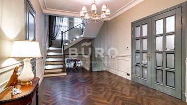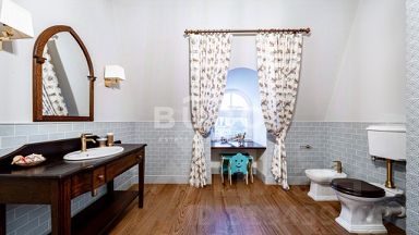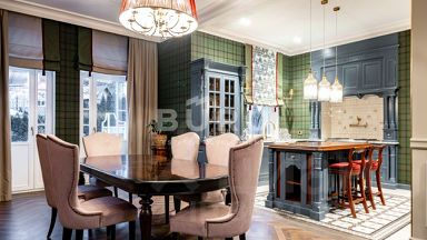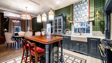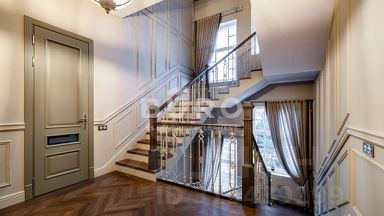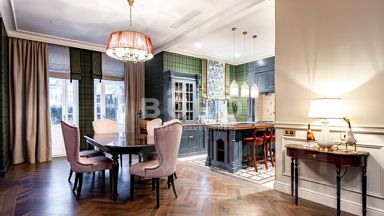 ID 8310Угловой таунхаус в классическом стиле в КП ''Ильинка'' на Новой Риге Дом с 3-мя спальнями, общей площадью 420 м², представлен ''под ключ'' и расположен на видовом участке 5.5 соток. Таунхаус возведен из высококачественных материалов и имеет удачное угловое расположение внутри КП. Таунхаус - отличная альтернатива городской квартире. Продумана функциональная планировка. Первый этаж: прихожая, гардеробная, кухня, столовая, гостиная с каминной, отдельный санузел, гараж. Второй этаж: мастер-спальня со своими санузлом и гардеробной, отдельный санузел, детская спальня, которую можно сделать кабинетом, рабочая зона, балкон.Третий этаж: (мансарда): общая зона (игровая, рабочая и ТВ-зона), комната-спальня. Отдельный блок со спальней, гардеробной и санузлом.Цоколь: большая сауна на 6-8 человек, душевая с обливом, зона отдыха, мини-кухня с барной зоной, ТВ-зона, санузел, котельная с отдельным входом с улицы (для удобства контроля и обслуживания во время отсутствия хозяев), оборудованные зоны хранения для уборки и белья, постирочная, техническое оборудование (водоподготовка, узлы учета, автоматика электрики). Фасад облицован клинкерной плиткой ''Feldhaus''. В доме выполнен дизайнерский ремонт в английском стиле с применением отделочных материалов премиальных брендов. Уютный интерьер укомплектован красивой мебелью и всей необходимой бытовой техникой ''Gaggenau'', в том числе варочным центром ''ILVE'' в эксклюзивном синем цвете. Великолепная каминная группа от одного из ведущих производителей создаст особую атмосферу домашнего уюта. Эксклюзивный текстиль и освещение привезены из Англии. В сауне из канадского кедра (с оборудованием ''IKI'', ''Harvia'', ''Tyko'') будет приятно восстанавливать силы после трудового дня. В лаунж-зоне на цокольном этаже предусмотрено всё для душевного отдыха. Большая площадь остекления и высокие потолки делают дом очень просторным и светлым. Монтированы новейшие инженерные системы для комфортного проживания в течение всего года. В доме установлена премиальная сантехника от фирм ''Imperial'', ''Sir Edward Johns'' и ''Thomas Crapper & Co''. Душевые - от ''Devon & Devon'' с уникальными термостатами ''Perrin & Rowe''. Центральные коммуникации: газ, электричество, водоснабжение и канализация. Есть возможность подключить высокоскоростной интернет, телефон и кабельное телевидение. Оптимальный микроклимат в доме поддерживают: системы вентиляции ''Komfovent 2700'', канальные кондиционеры ''General Mitsubishi'', системы отопления и ГВС (''Viessmann'' и ''Arbonia''), а также встроенные системы фильтрации подогрева и увлажнения воздуха. Предусмотрена система водоподготовки.На большом участке с ландшафтным дизайном обустроена приватная зона для отдыха на свежем воздухе. Высажены кустарники и молодые деревья. Сделаны дорожки. Живая изгородь по периметру создает приватную обстановку, а уличное освещение - романтическое настроение в вечернее время. Установлена система автополива фирмы ''Hunter''. Перед гаражом обустроена площадка для парковки. Коттеджный посёлок ''Ильинка'' с развитой инфраструктурой находится вблизи Столицы в престижном, экологически чистом районе Подмосковья.Быстро доехать до МКАД на машине получится по Ильинскому и Рублево-Успенскому шоссе. Рядом лес и Москва-река, множество живописных пейзажей, а также уникальный заповедник ''Лохин остров''. На территории КП обустроены прекрасные прогулочные аллеи 