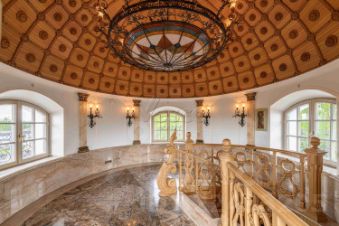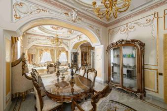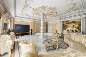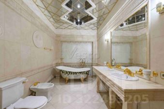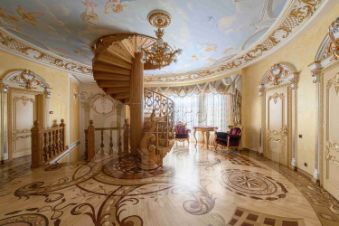 Лот 102656. Эксклюзив Vesco Realty. Коттеджный поселок ''Третья охота''Элегантная резиденция 1778 кв.м, созданная по индивидуальному проекту в классическом стиле, расположена на участке 28 сот в КП Третья Охота, всего в 9 км от МКАД по Новорижскому шоссе, с удобным заездом через Рублевское и Ильинское шоссе. Один из самых близких элитных коттеджных поселков, со сложившейся застройкой и статусными спокойными соседями.В доме: 7 спален, ТВ-гостиная, каминный зал со столовой, изолированная кухня, спа-комплекс с сауной и хаммамом, бильярдная, 2 бара, винная, библиотека, несколько помещений свободного назначения, блок персонала с отдельным входом, гараж на 3 м/м, многочисленные террасы и балконы, даже собственная смотровая.Особенности резиденции: живописный зеленый участок с ландшафтным дизайном, парадный въезд с круговой площадкой и фонтаном в центре, особняк с меблировкой заезжай и живи, отделка дорогими материалами по эксклюзивным эскизам, в доме много элементов ручной работы, интерьеры в стиле венецианской классики, все в отличном состоянии.ПЛАНИРОВКАВысота потолков — 3,7 м.1 этаж:Общие помещения: прихожая (11,1), гардеробная (7,2), холл (28), каминный зал (45), столовая (29), кухня (22,1) с выходом на террасу (22,3), гостиная (74,4) с выходом на террасу (9,8), кабинет (12,8) с кладовой (1,5), гостевой с/у (1,5), зона спа с бочкой (10,5), сауна (6,9) с душевой (2,3), гараж на 3 м/м (71,3).Спальни: гостевой блок со спальней (10,3), санузлом (3,9), кладовой (2,9) и гардеробной (4,9).2 этаж:Общие помещения: холл (38), балкон (4).Мастер-спальня (22) с будуаром (10), гардеробной (9), ванной комнатой (7) и балконом (7). Спальня (21) с гардеробной (5) и ванной комнатой (4). Детские (19 и 20), детская (15) с балконом (10), общая ванная (9).Мансардный этаж первый:Холл (40), библиотека (53), комната для занятий или хранения (87).Мансардный этаж второй:Смотровая (14), балкон (19).Цоколь:Бильярдная с баром (72), переговорная (55), винное хранилище (11), хаммам (19) с комнатой отдыха (28), гостевой с/у (5).Блок для персонала: спальня (10), кухня (14), с/у (3).Постирочная (14), оружейная (17), кладовые (16 + 9 + 11 + 9), генераторная (15), котельная (11), электрощитовая (9).УЧАСТОКРезиденция стоит на участке с ровным рельефом и живописным ландшафтным дизайном в парковом стиле. На территории установлена беседка с мангалом, фонтан у въезда, сад камней с водопадом и фигурами ангелов, обустроены зоны современных грядок.По периметру территория огорожена хвойными растениями, на участке высажены взрослые растения (канадский дуб, клены, кусты) и плодовые деревья (20 шт.). На участке древесно-подзолистый грунт, выполнен дренаж, есть автоматический полив, устроено освещение. Участок угловой с двумя соседями, расположен недалеко от лесного массива.КОНСТРУКТИВ И МАТЕРИАЛЫКирпичный особняк, монолитные перекрытия, крыша - медь, фасад - натуральный камень и декоративная штукатурка, многочисленный декор в виде статуй, карнизов и балюстрад. Террасы отделаны мрамором.Стены в доме - декоративная штукатурка, роспись, натуральное дерево и мрамор. Пол — художественный паркет и мрамор. Потолки - ручная роспись и деревянные элементы. Двери и подоконники - массив дерева, мрамор. Лестничный марш - массив дерева, тончайшая работа по эксклюзивным эскизам. ИНЖЕНЕРИЯЦентральные водоснабжение и канализация, электричество 45 кВт.В доме приточно-вытяжная вентиляция Daikin, два котла Viessmann мощностью 225 кВт (26,2 куб.м/ч). Охранная и пожа