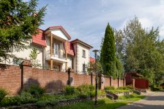 Номер объекта 83671. = Двухэтажный кирпичный дом для круглогодичного проживания в непосредственной близости к Москве, в тихом уютном месте = К продаже предлагается дом общей площадью 384,7 кв.м., расположенный на участке 15 соток. Два этажа. Дом построен из красного кирпича в два слоя. Дом строился добротно, на века. Расположен в камерном охраняемом поселке, без посторонних лиц, все соседи давно построились. Тихое место, никаких шумных дорог не слышно, только пение птиц. Коммуникации: электричество 30кВт, магистральный газ, вода (скважина) с системой глубокой очистки, канализация - центральная, интернет - оптоволокно. Фундамент - ленточный 2,2 м глубина. Планировка включает: 1 этаж: просторная кухня 20 кв.м., гостиная с обеденной зоной и с дровяным камином 67 кв.м., с выходом на большую летнюю веранду, большой холл, санузел, бойлерная, крытый гараж 35 кв.м. 2 этаж: мастер-спальня 44 кв.м. с большим санузлом, и еще 2 отдельные комнаты, санузел, сауна с большой комнатой отдыха. Имеется дополнительный гараж на 3 автомобиля. Участок 15 соток, с большими красивыми декоративными и плодовыми деревьями и растениями. Много зелени. Отличная транспортная доступность, дорога без светофоров до МКАД 19 км, всего 13 минут на машине по скоростному Новорижскому шоссе. Оперативный показ. Звоните!